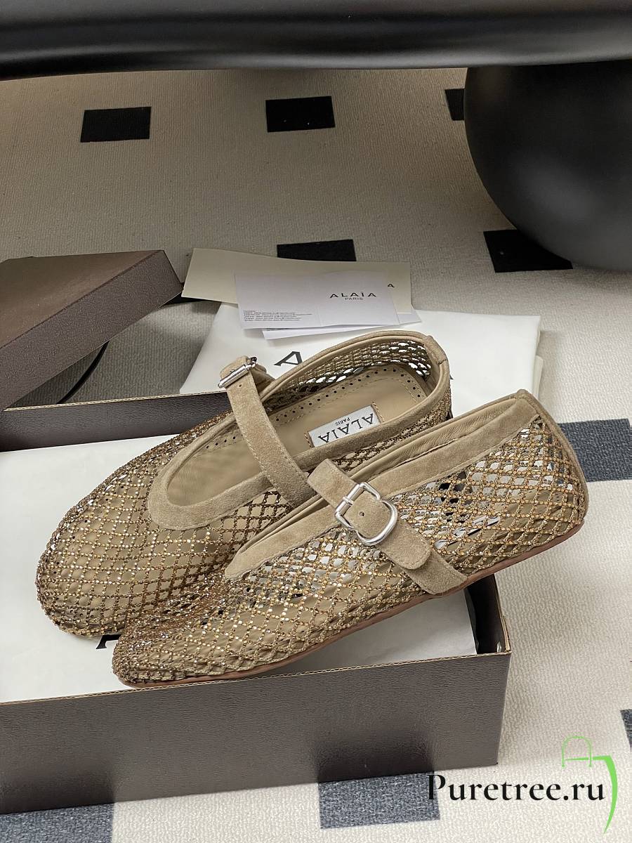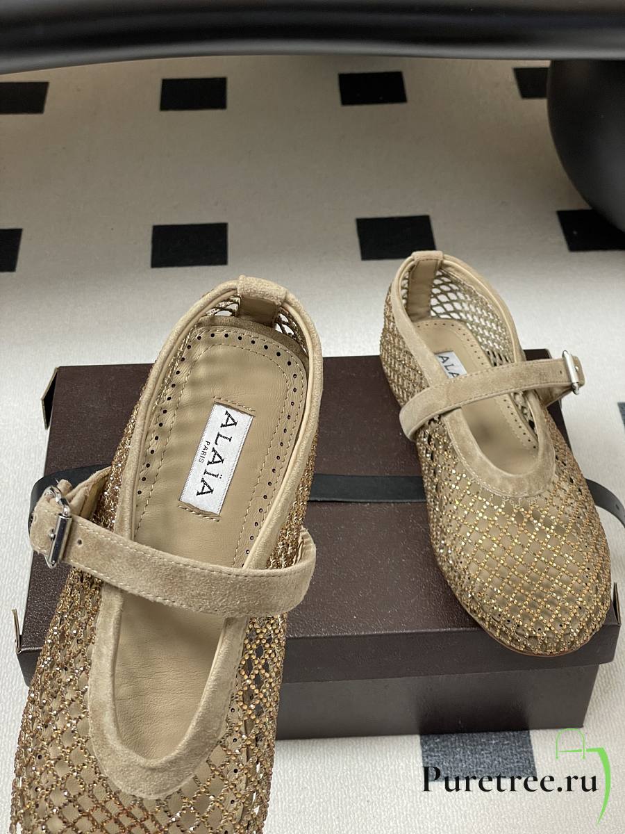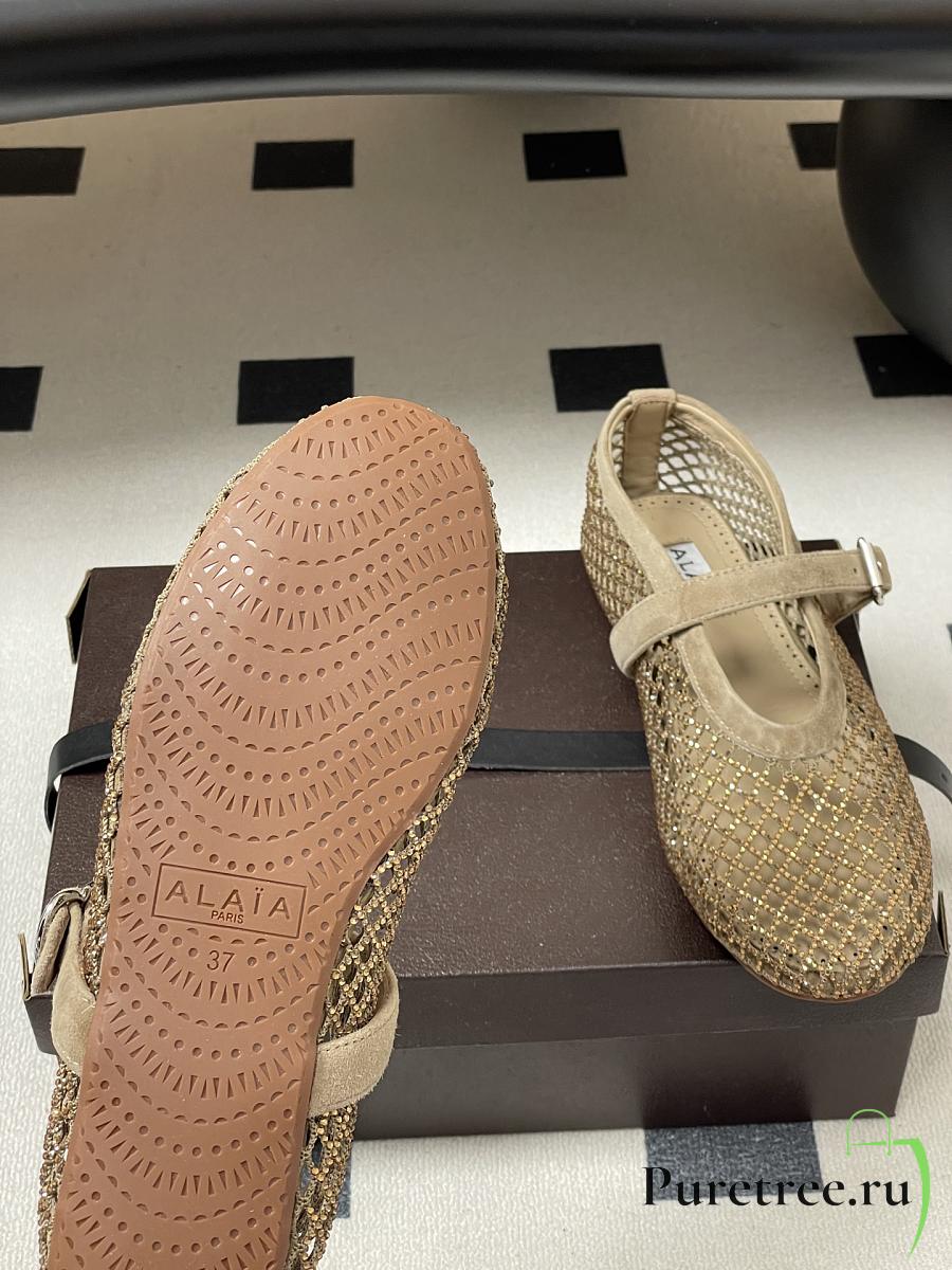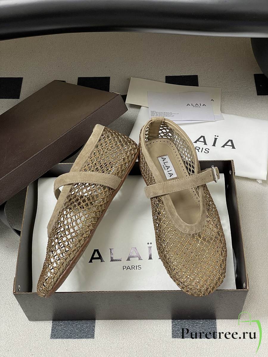Alaïa Brown Mesh Ballet Flats In Beige