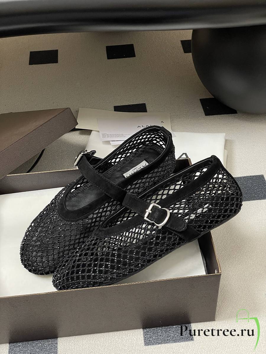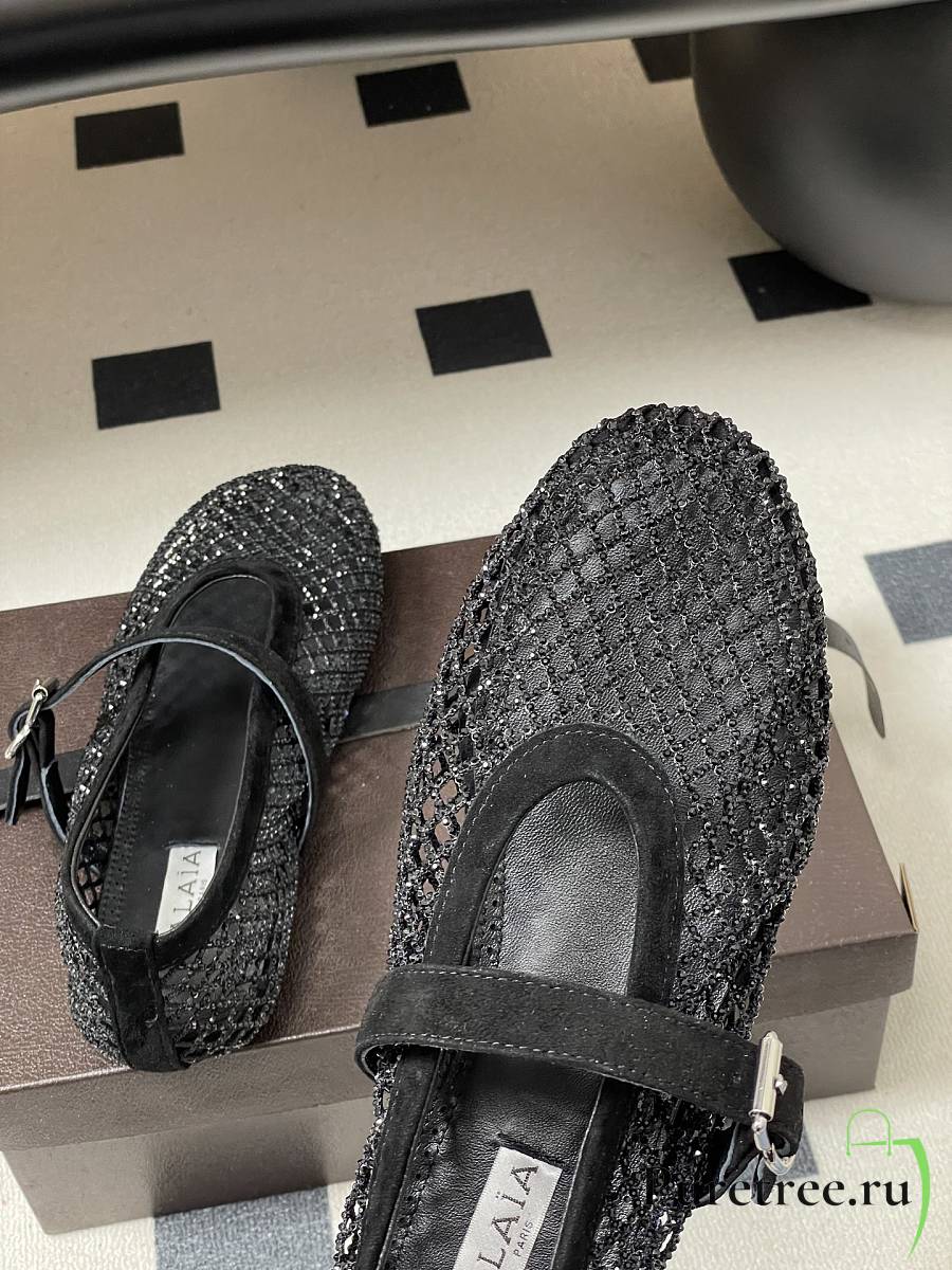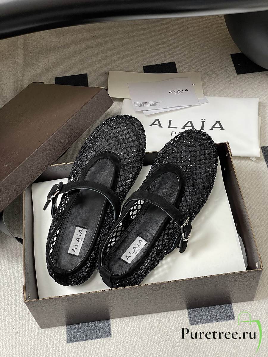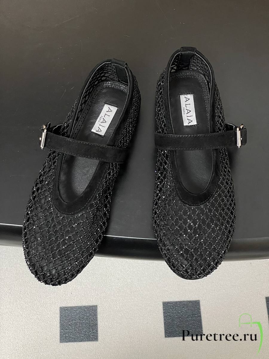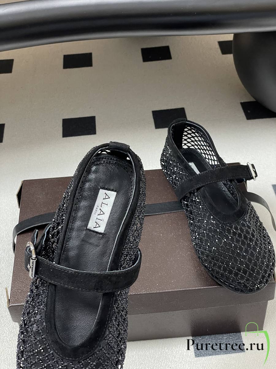 Alaïa Brown Mesh Ballet Flats In Black