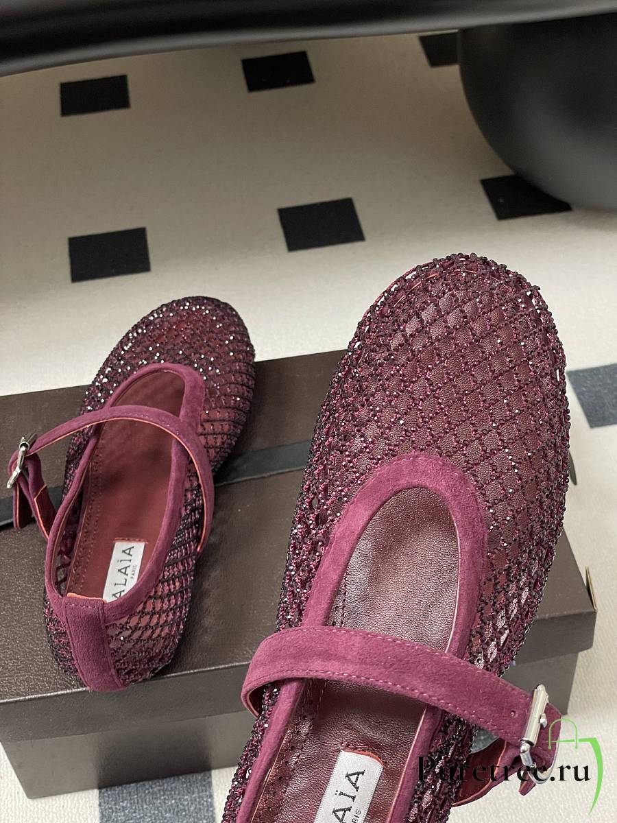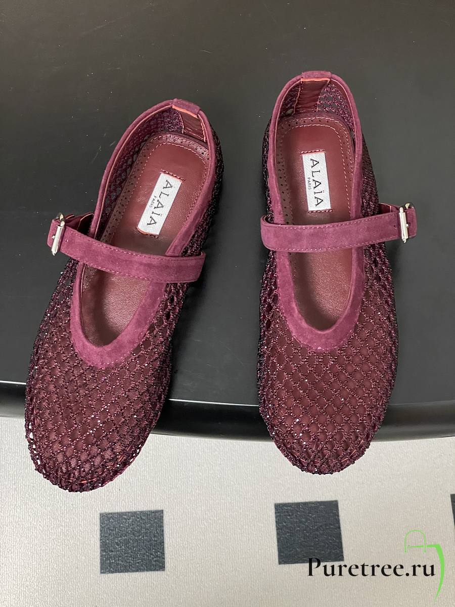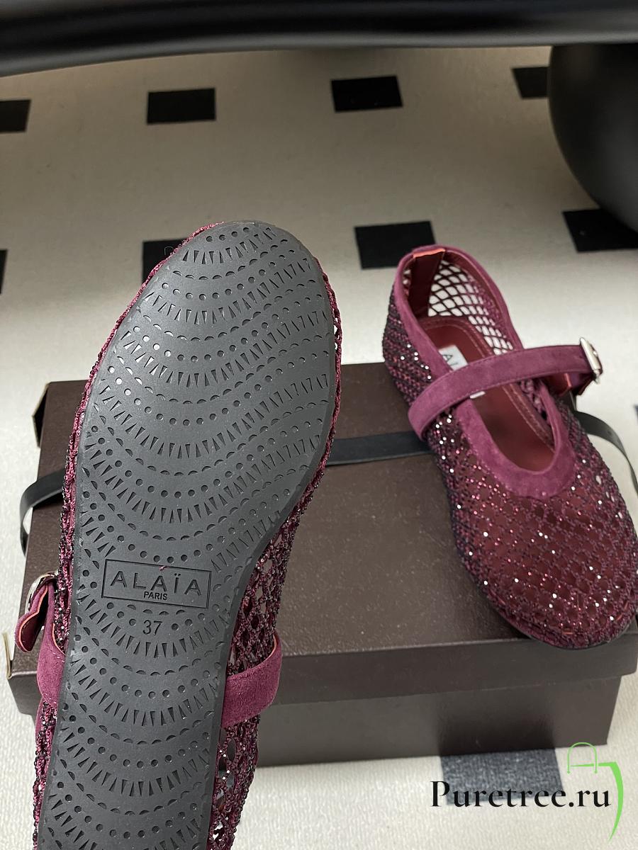 Alaïa Brown Mesh Ballet Flats In Burgundy