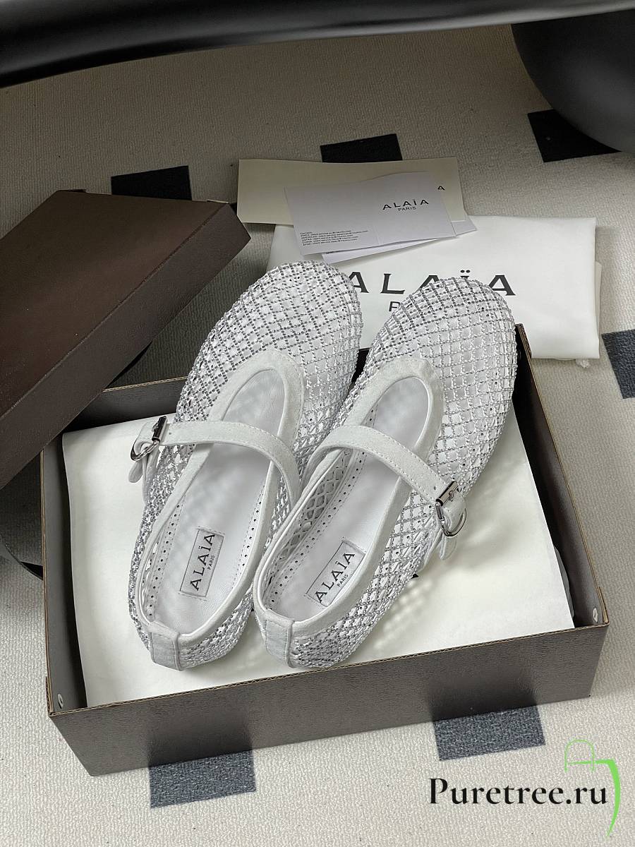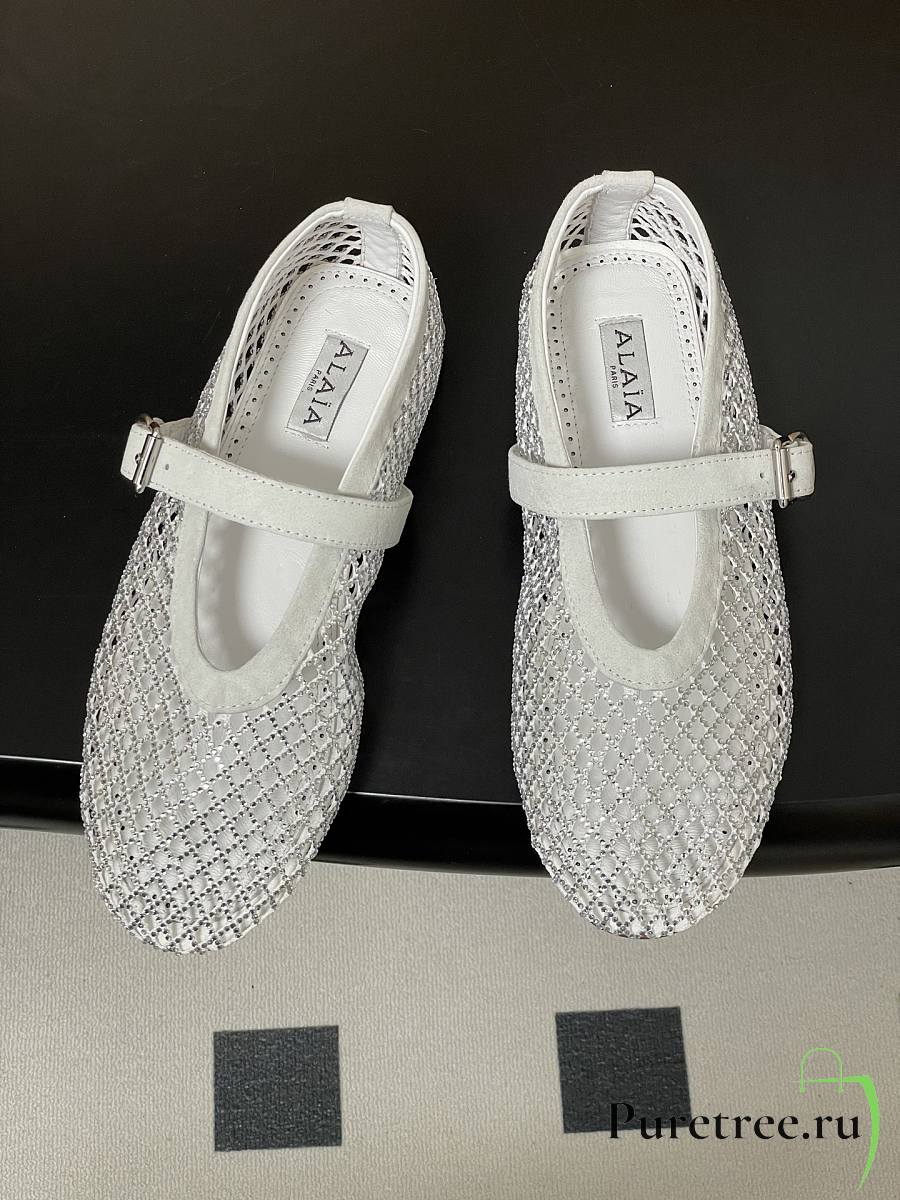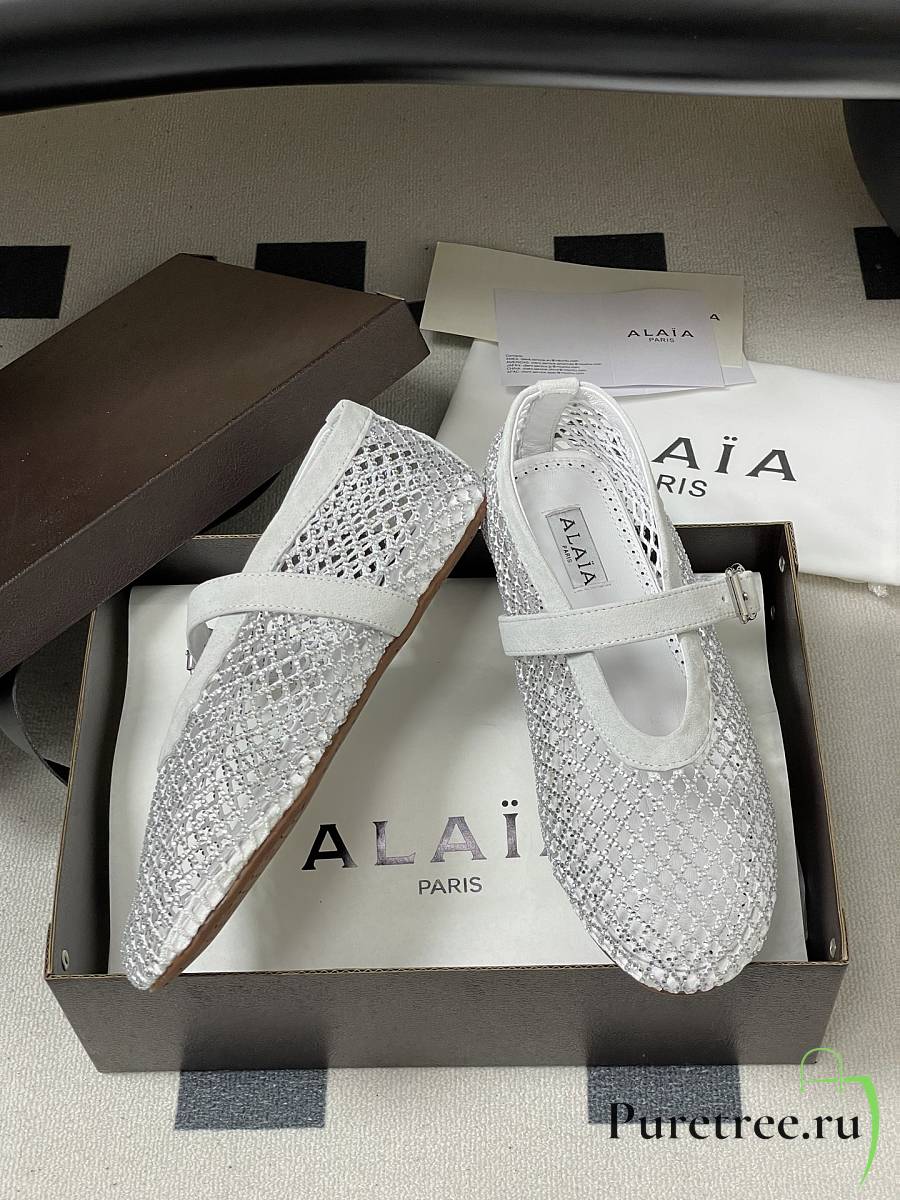 Alaïa Brown Mesh Ballet Flats In White