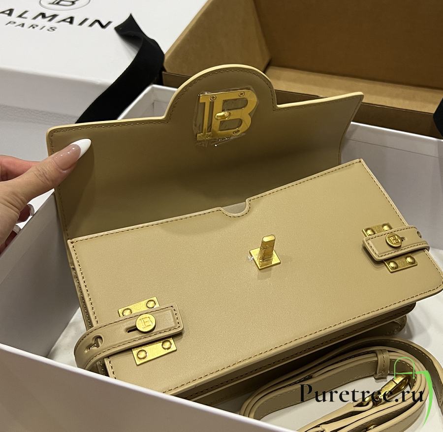 BALMAIN Smooth leather B-Buzz 24 bag beige
