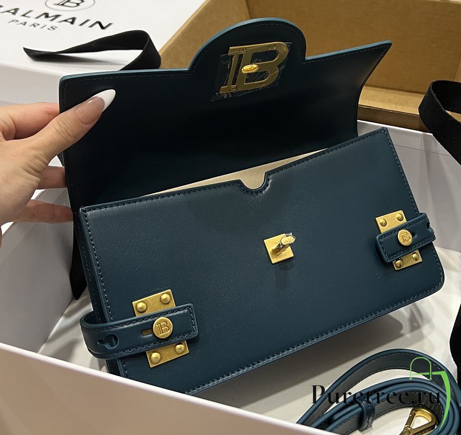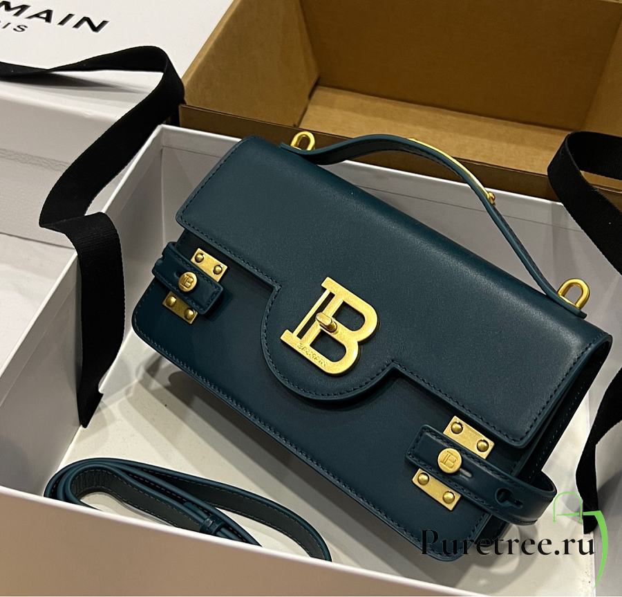 BALMAIN Smooth leather B-Buzz 24 bag Emerald green