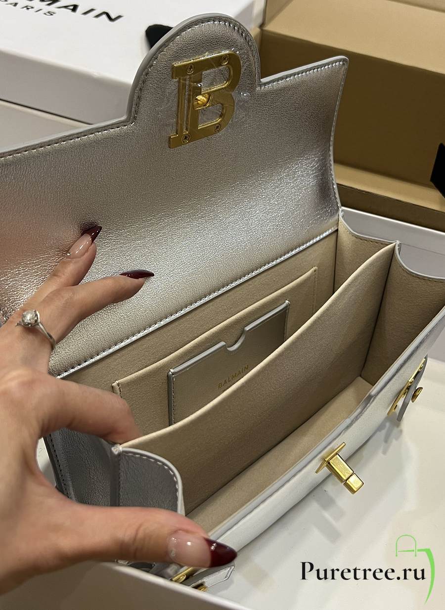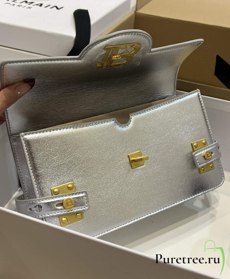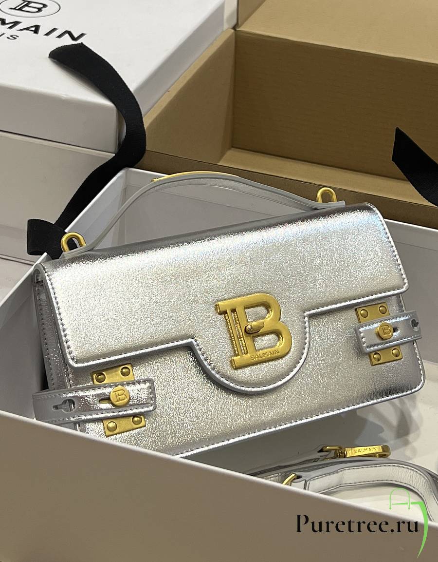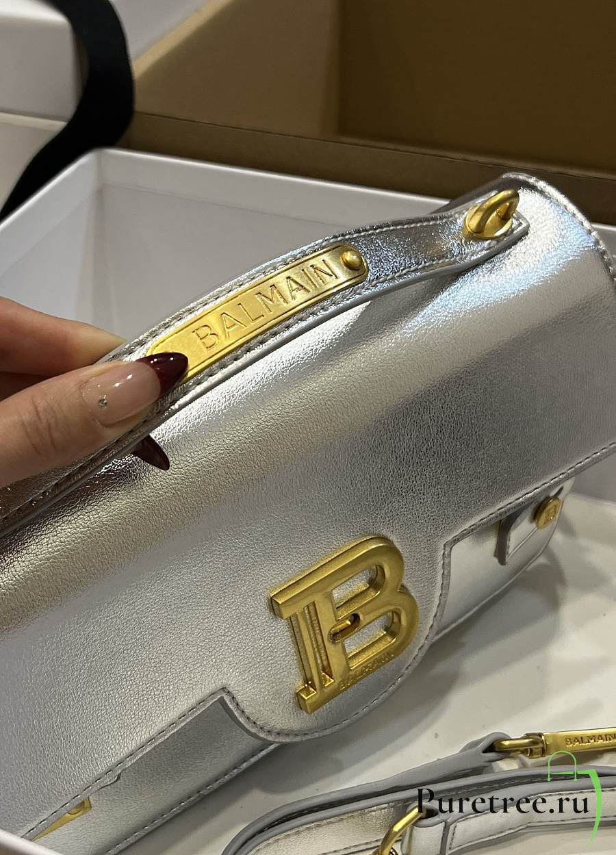 BALMAIN Smooth leather B-Buzz 24 bag Emerald Silver