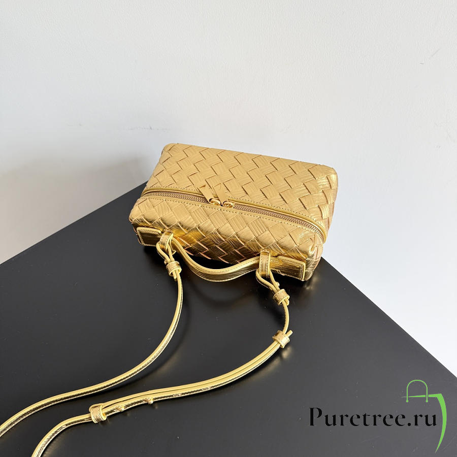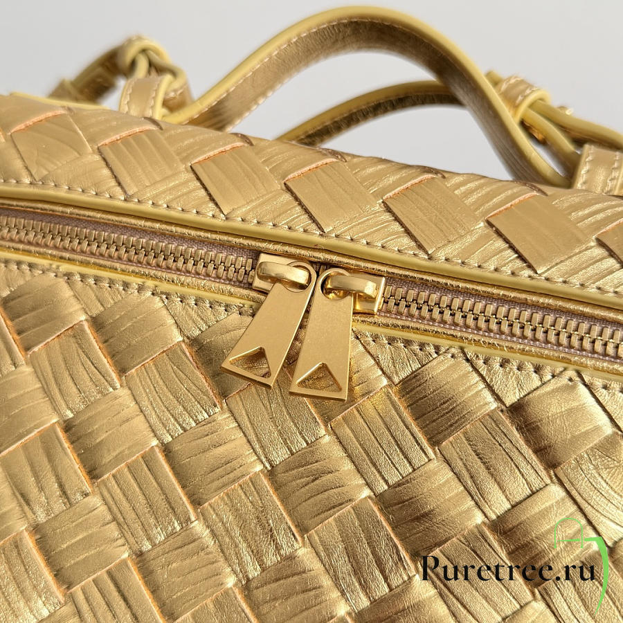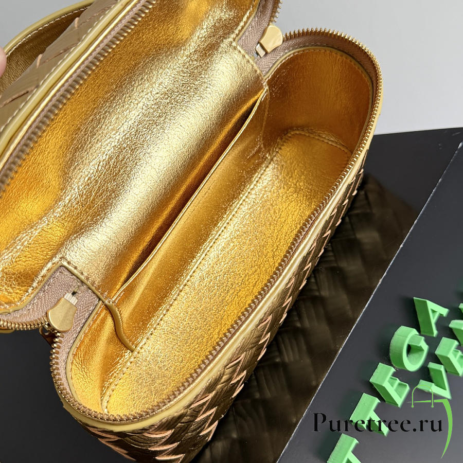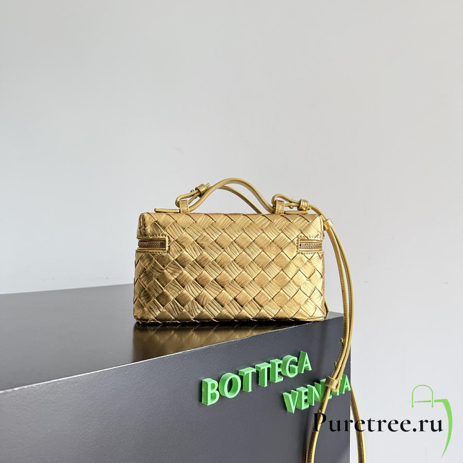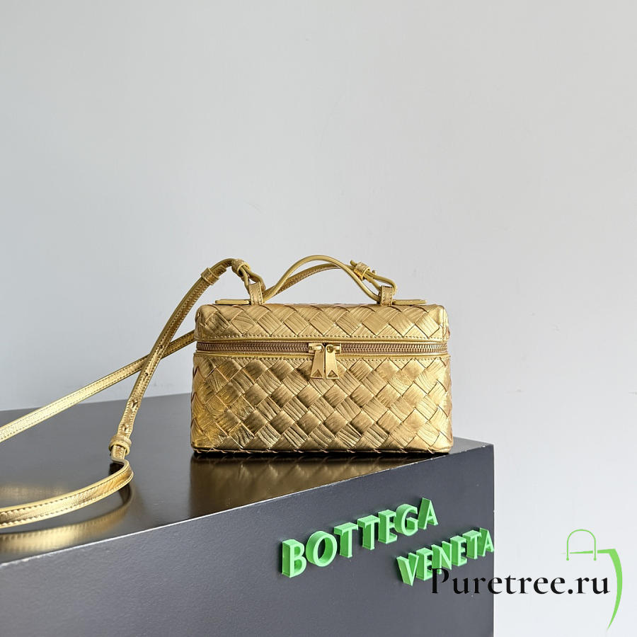 BOTTEGA VENETA | Bang Bang Vanity case in Intrecciato wood-embossed gold