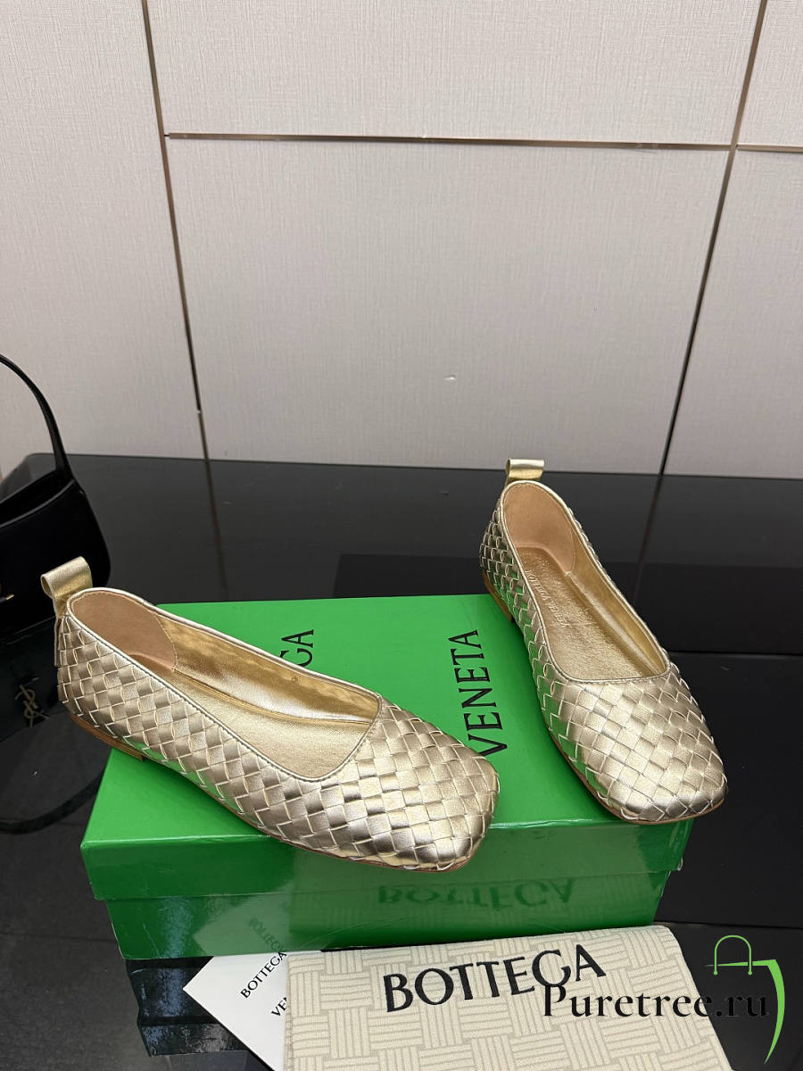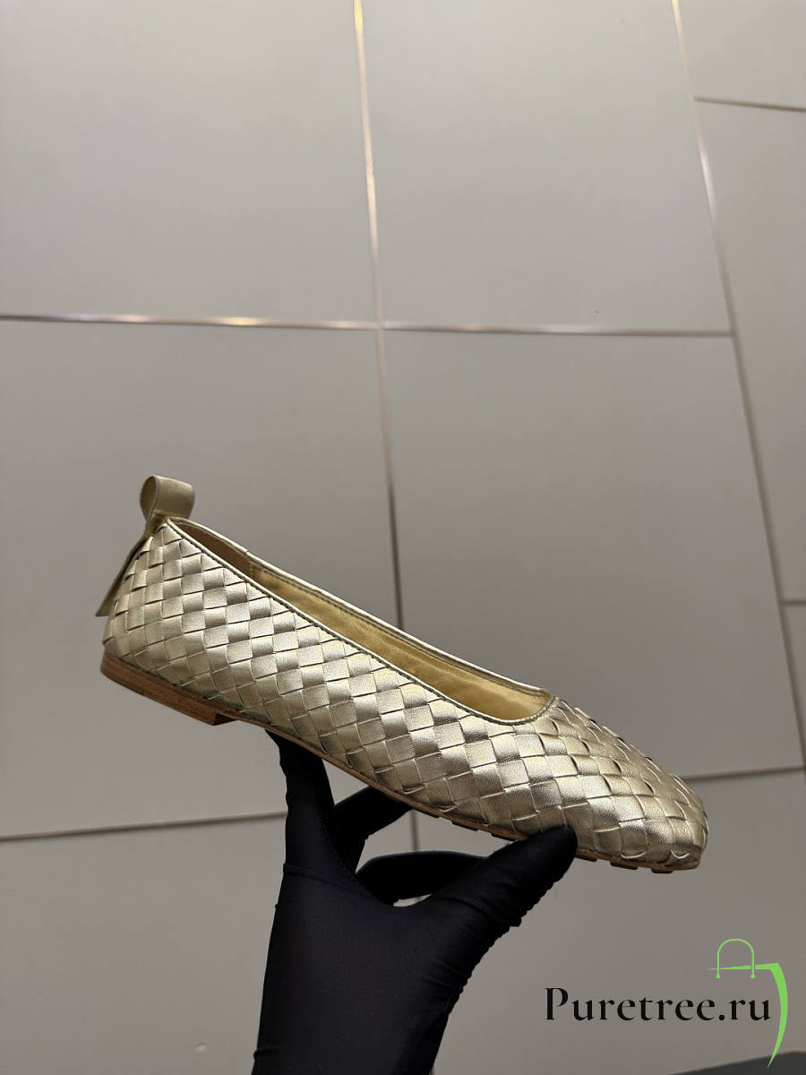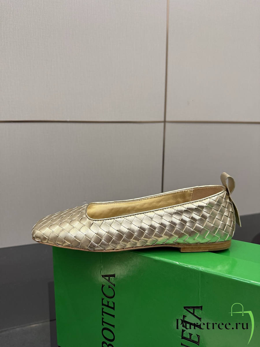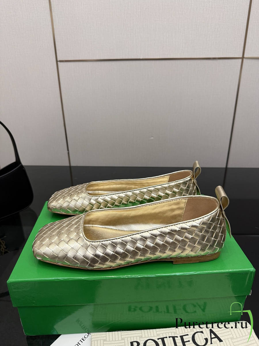 BOTTEGA VENETA | Gold Intrecciato Woven Nappa Leather Bow Ballet Flats