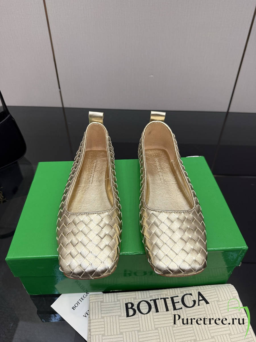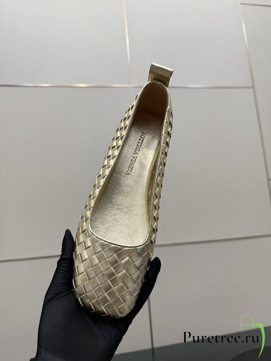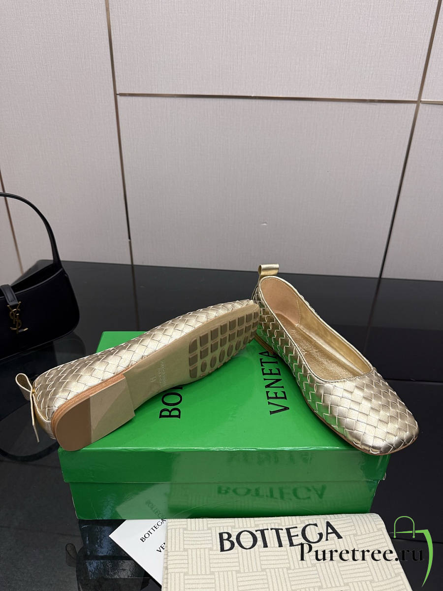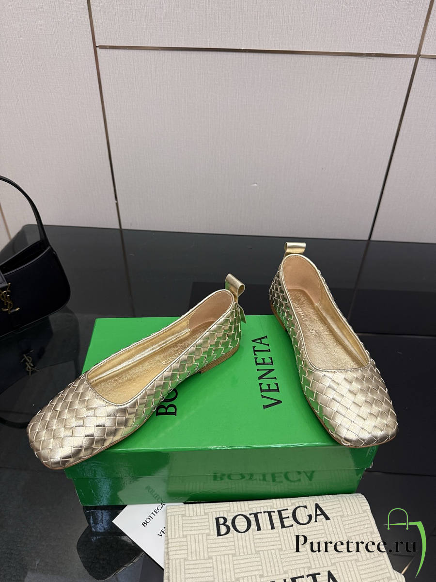 BOTTEGA VENETA | Gold Intrecciato Woven Nappa Leather Bow Ballet Flats