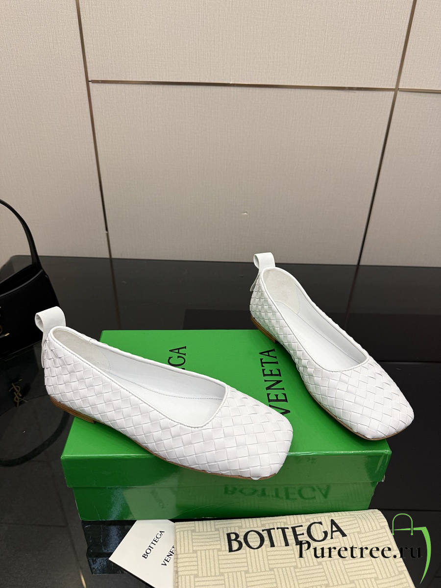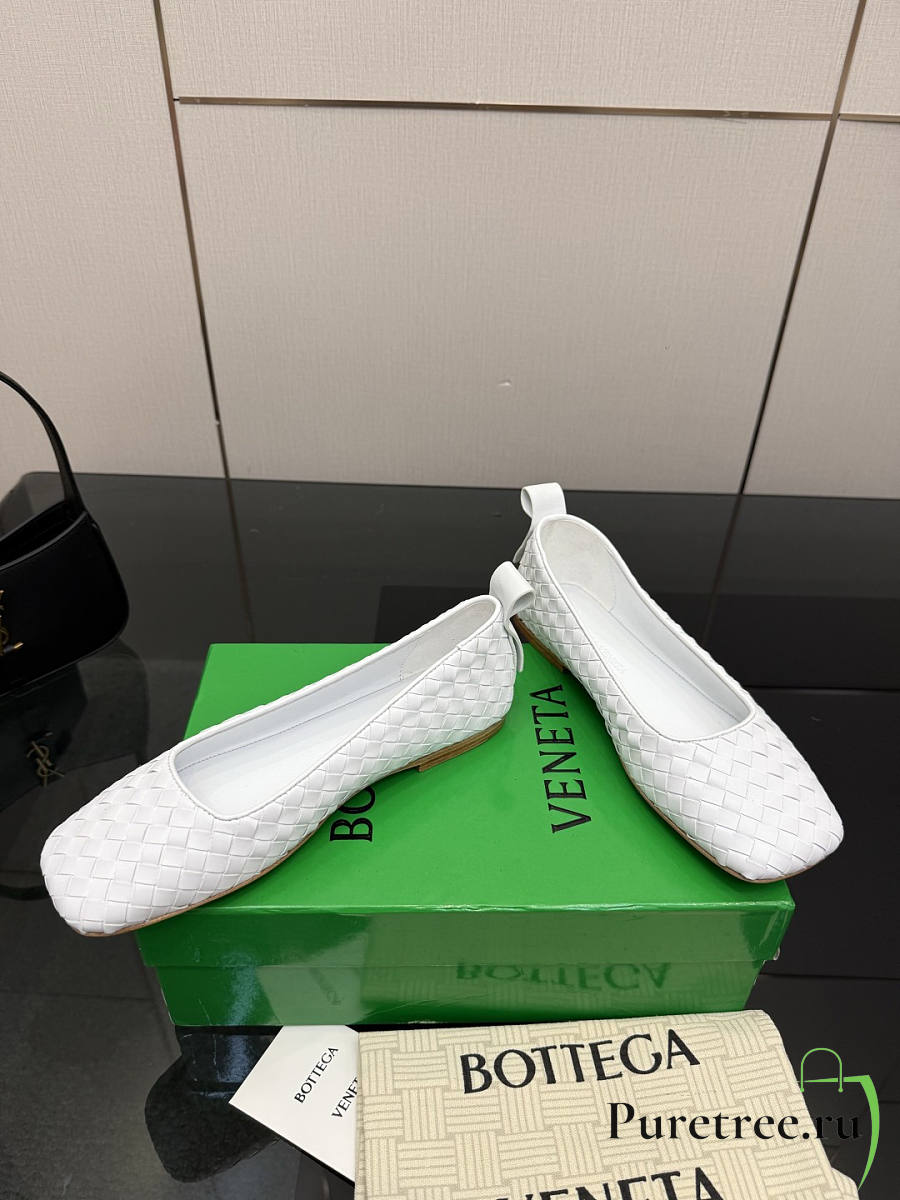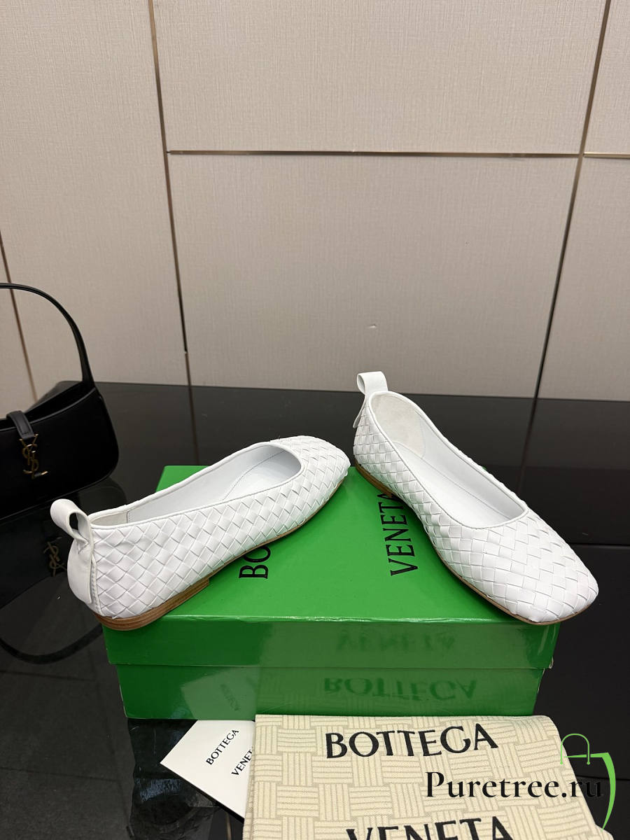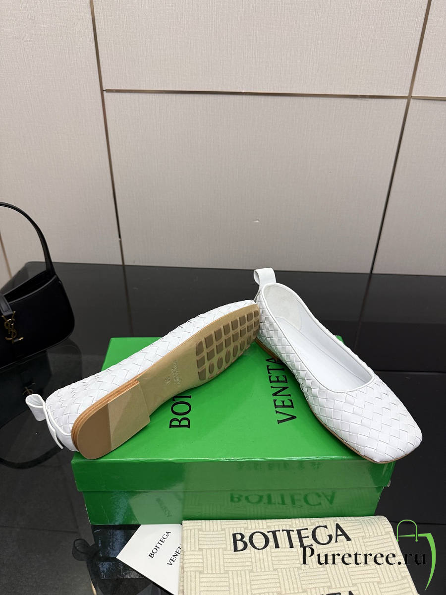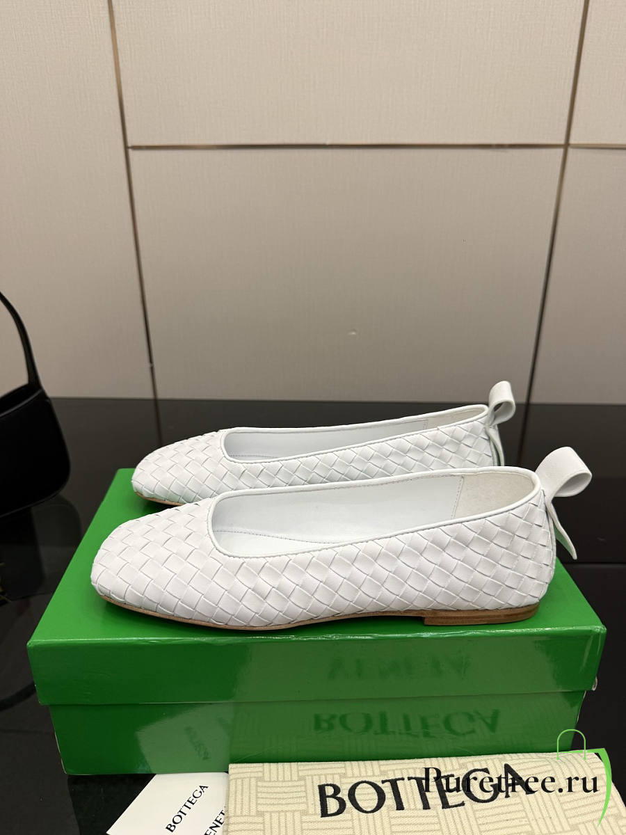 BOTTEGA VENETA | White Intrecciato Woven Nappa Leather Bow Ballet Flats