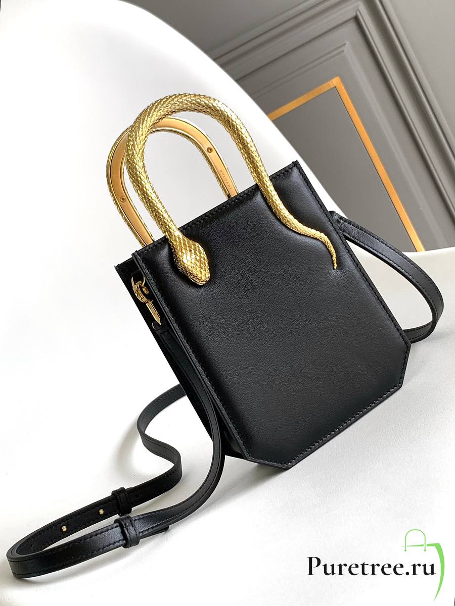 BVLGARI | Serpentine mini tote bag in black Metropolitan calf leather