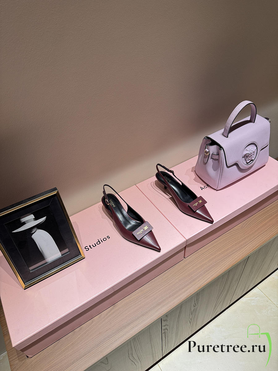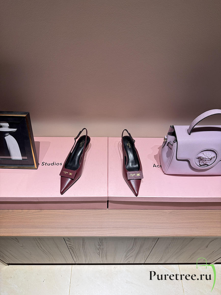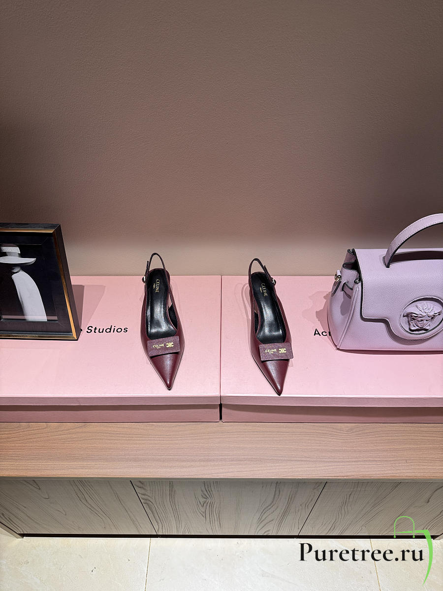 CELINE | New Kitten Heel Sandals Burgundy