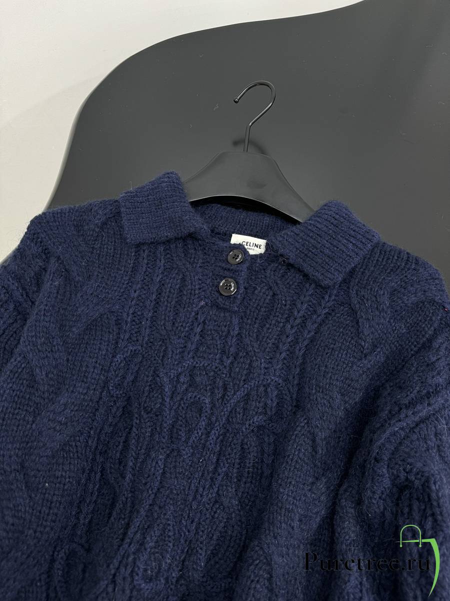 CELINE | New Wool Blend Polo Shirt Navy Blue