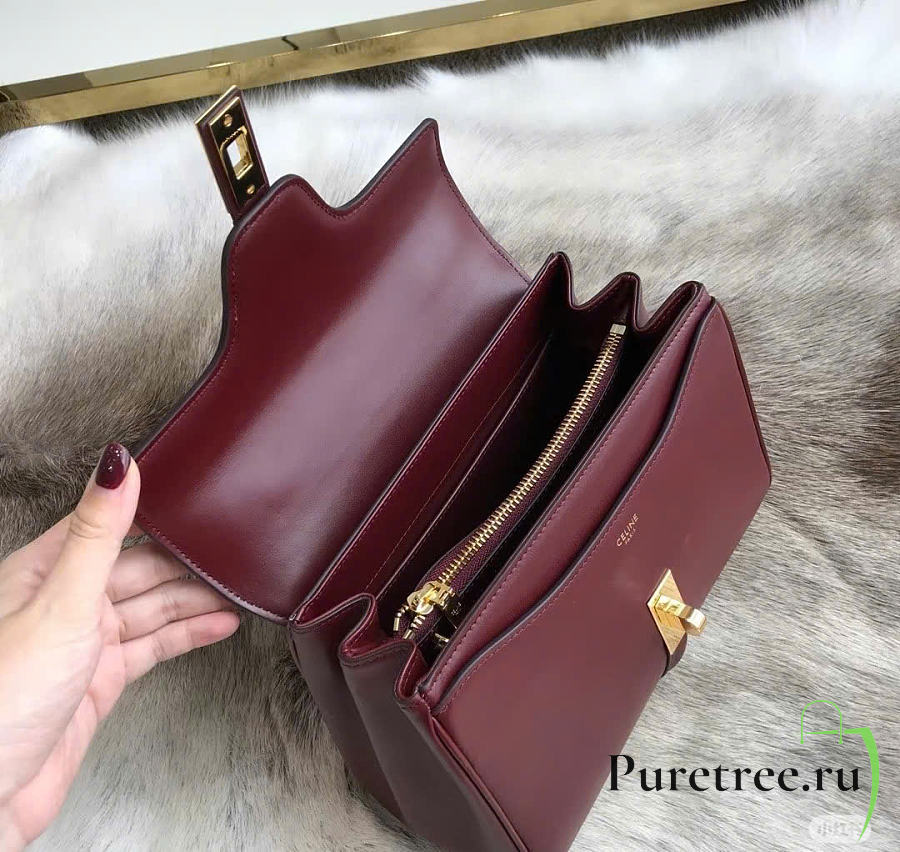 Celine Small 16 Bag Burgundy Calfskin size 23 x 19 x 10.5 cm