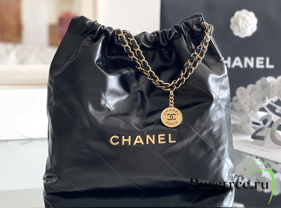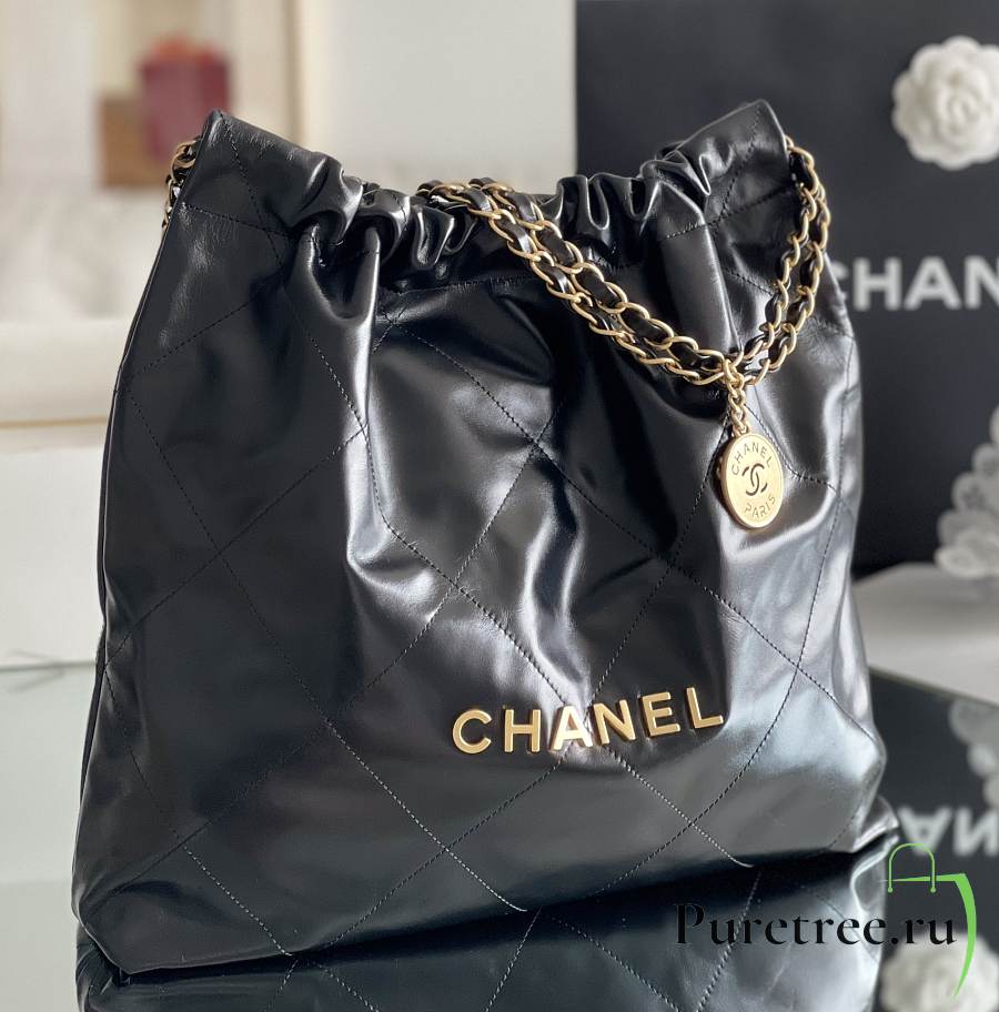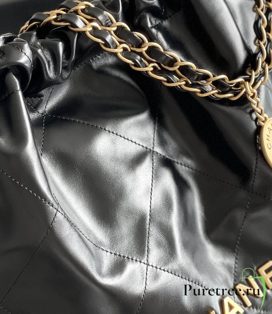 CHANEL | 22 Handbag Shiny Calfskin & Gold-Tone Metal Black AS3261