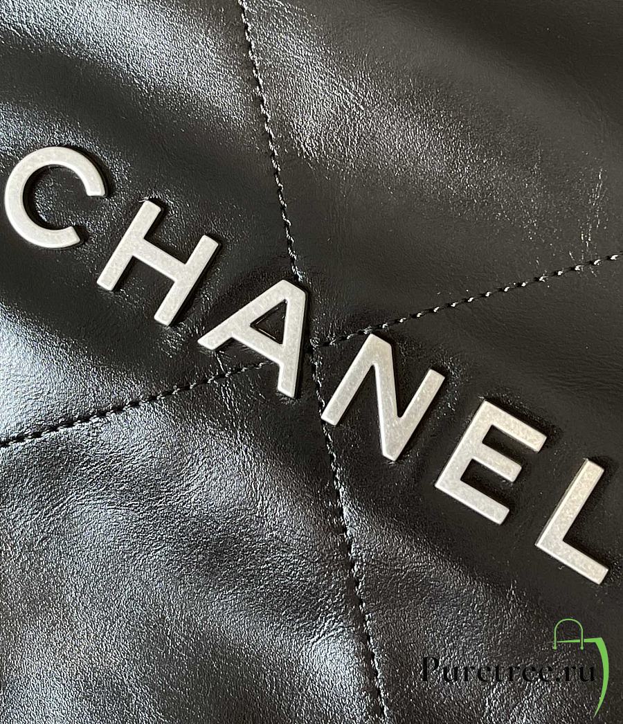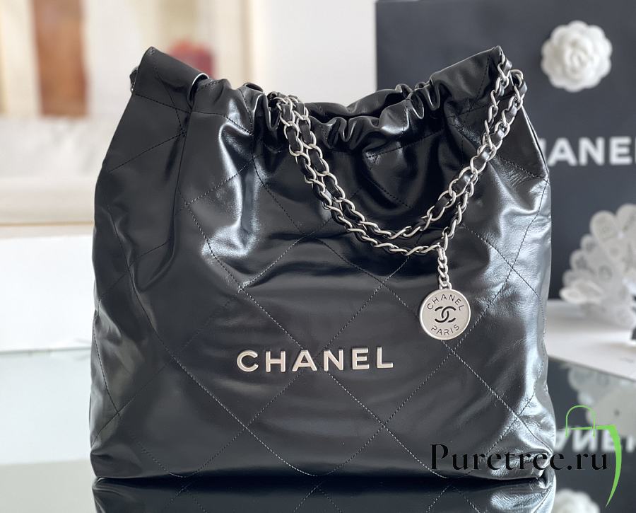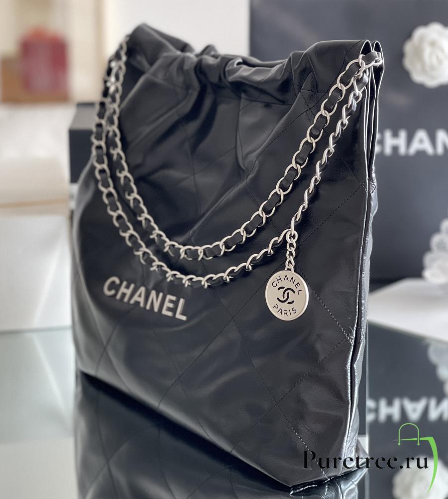 CHANEL | 22 Handbag Shiny Calfskin & Silver-Tone Metal Black AS3261