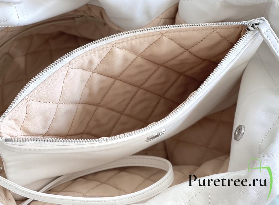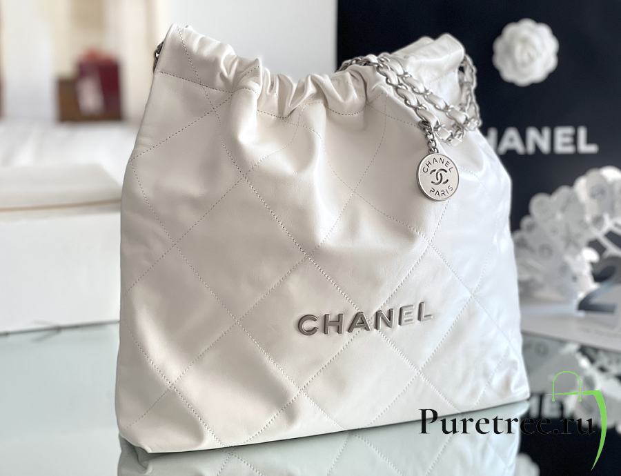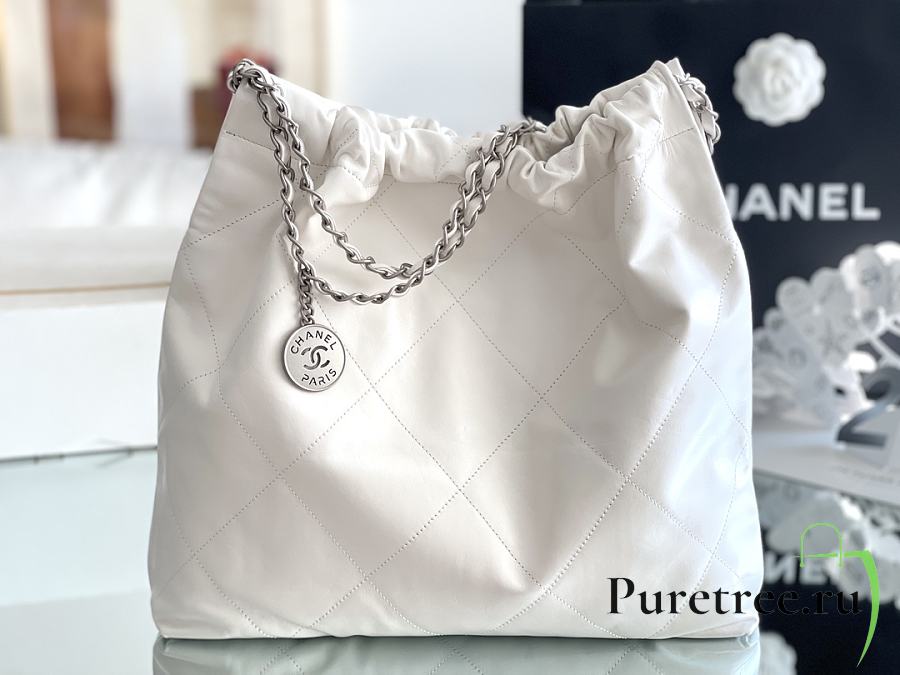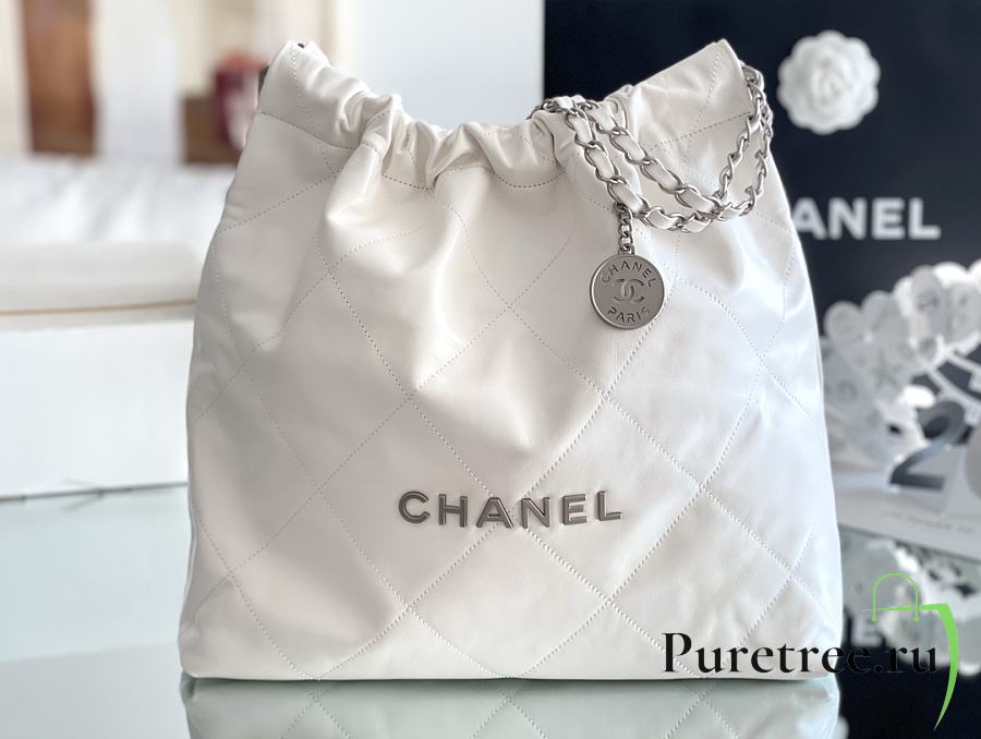 CHANEL | 22 Handbag Shiny Calfskin & Silver-Tone Metal White AS3261