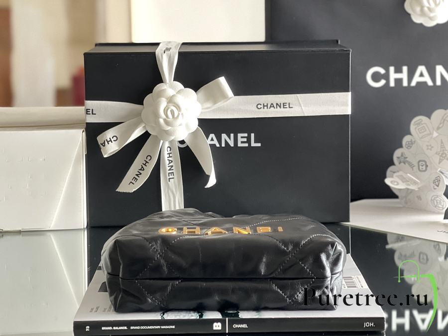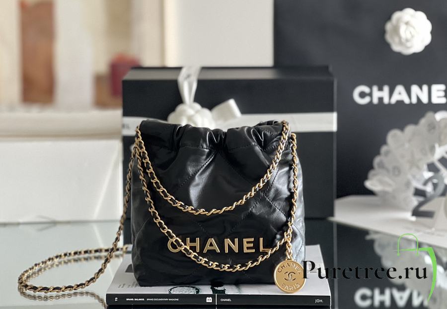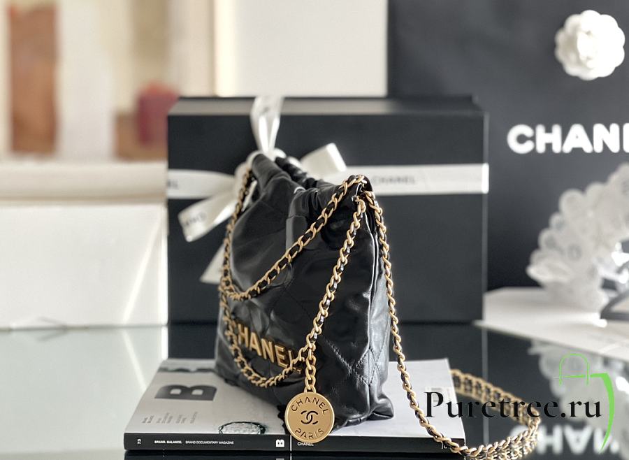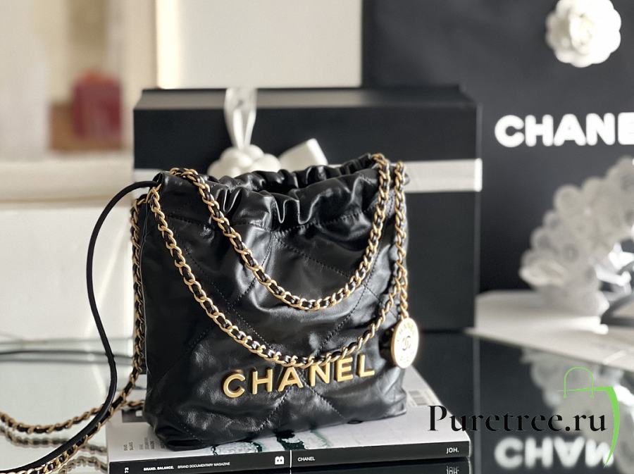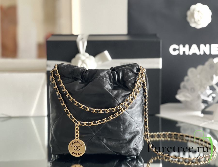 CHANEL | 22 mini bag Glossy Calfskin & Gold Metal Black AS3260
