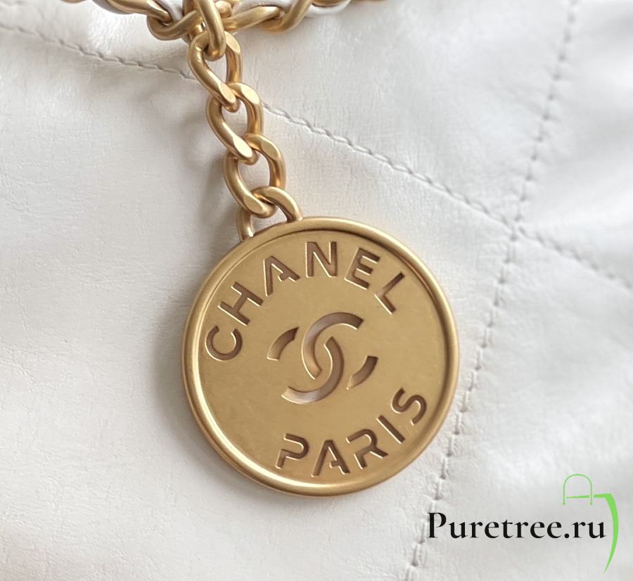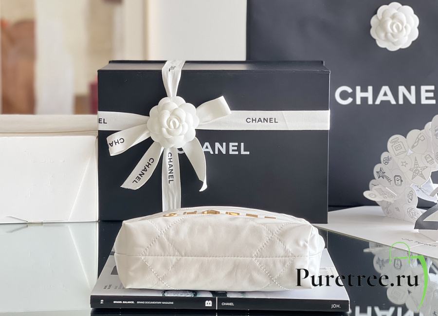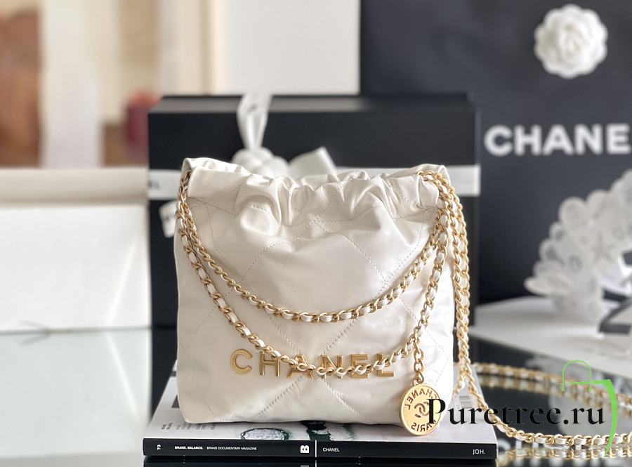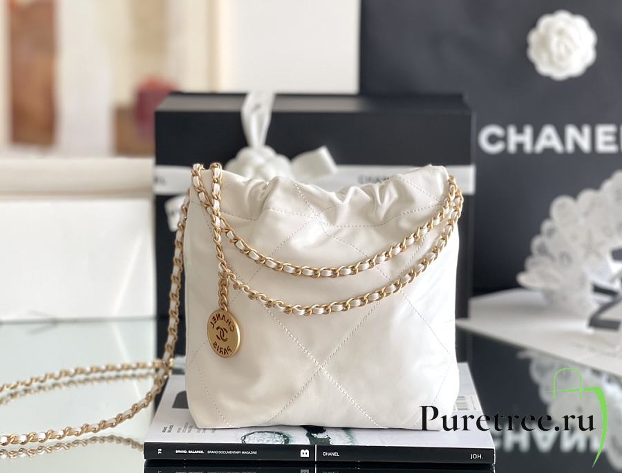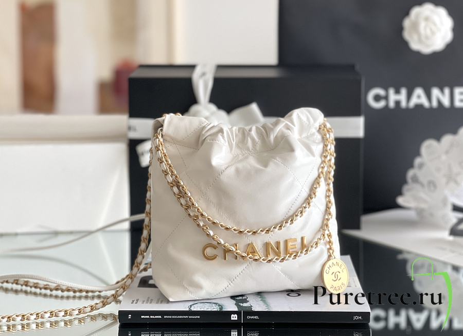 CHANEL | 22 mini bag Glossy Calfskin & Gold Metal White AS3260