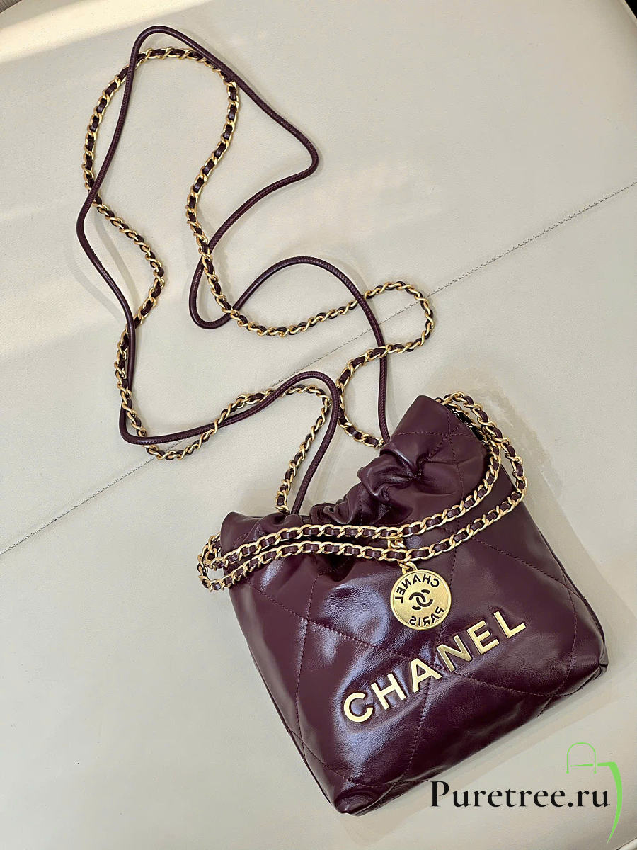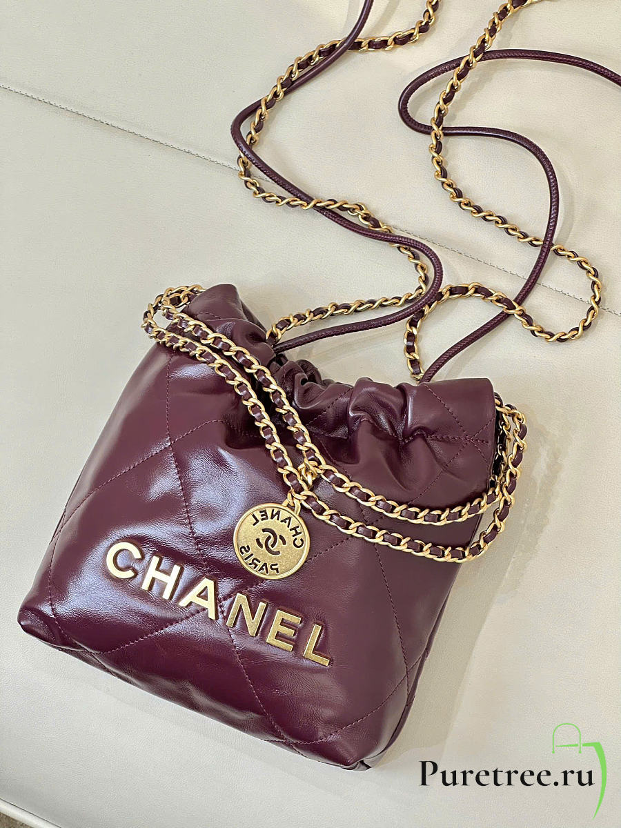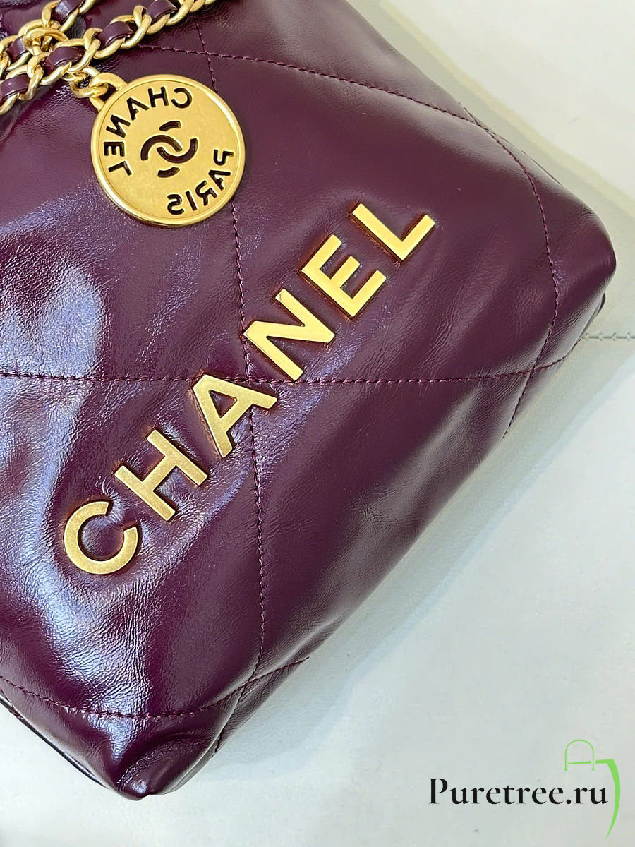 CHANEL 22 Shiny Calfskin Mini size Burgundy