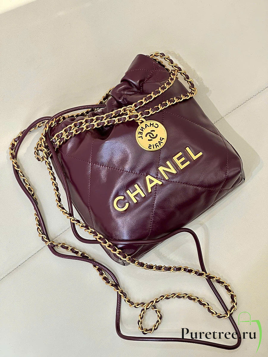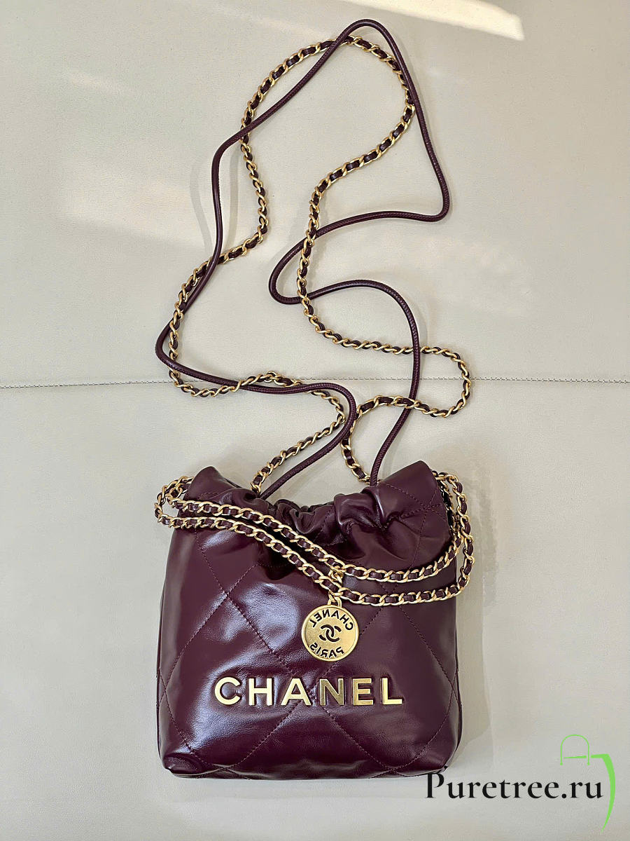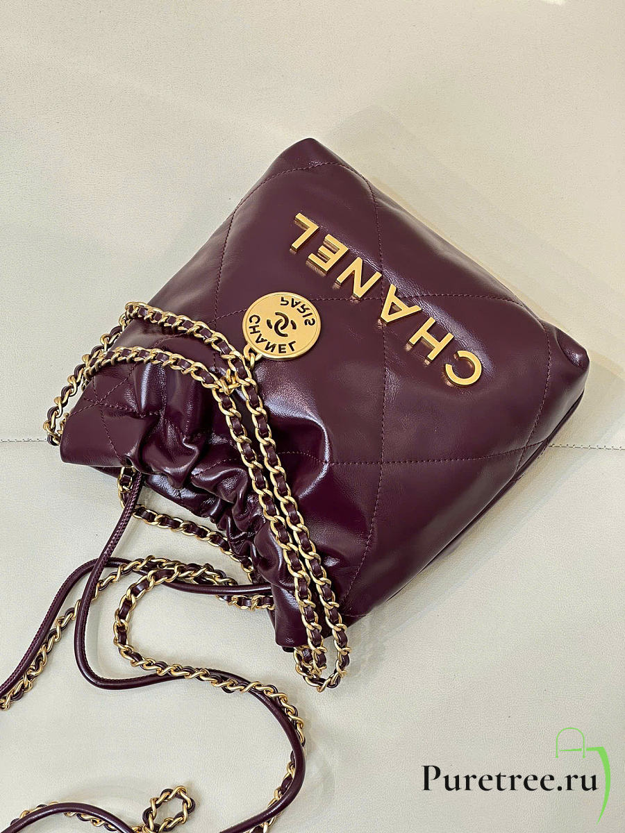 CHANEL 22 Shiny Calfskin Mini size Burgundy
