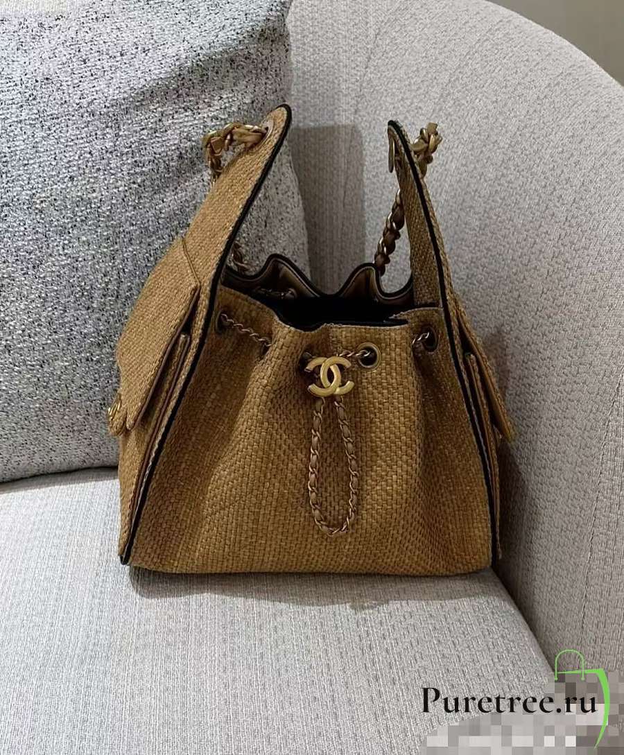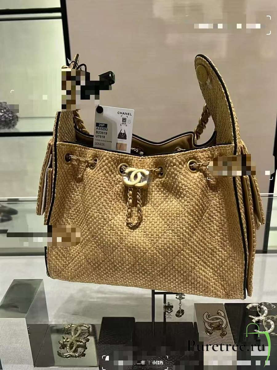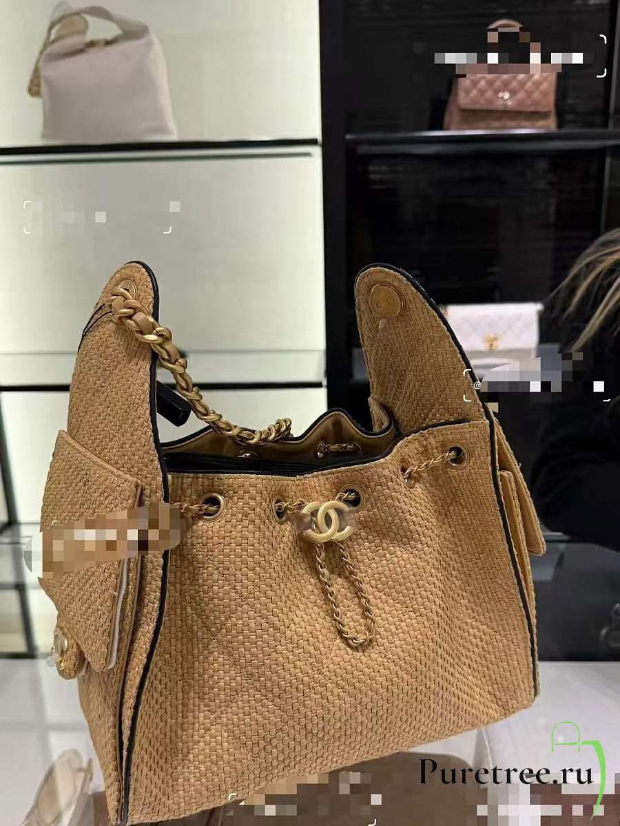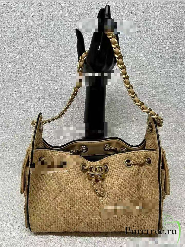 CHANEL | 25 Mini handbag Braided Raffia, Calfskin & Gold-Tone Metal Beige & Black