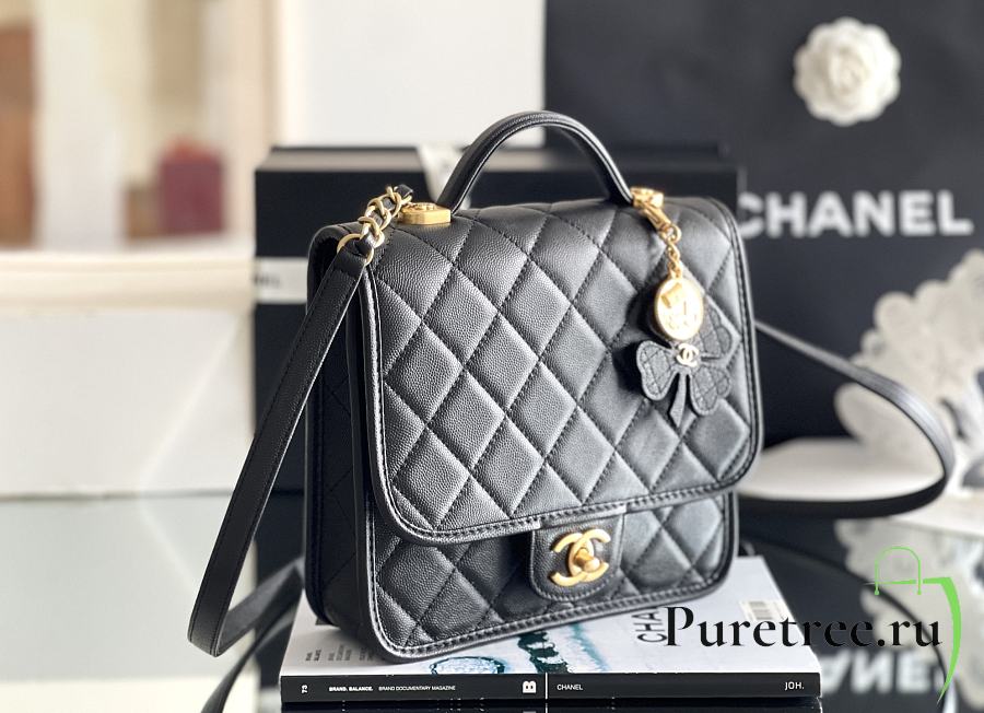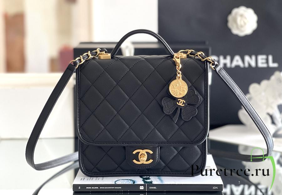 CHANEL | 25B Four-Leaf Clover Charm Backpack In Black