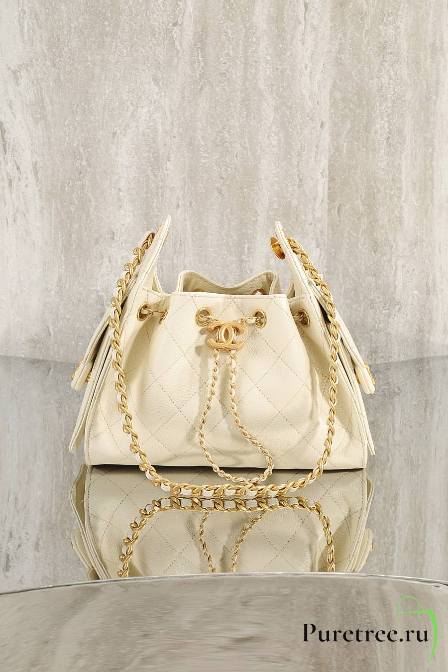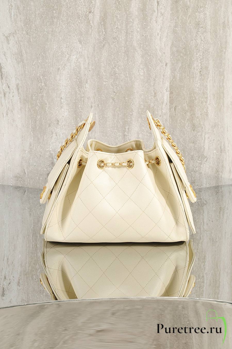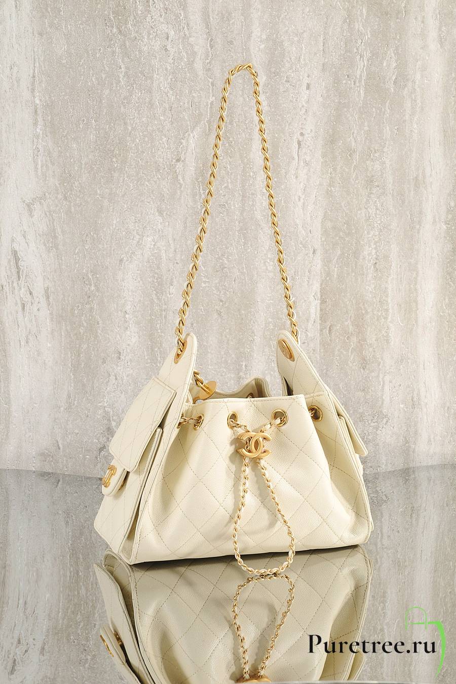 Chanel large classic handbag grained calfskin gold black - 30cm