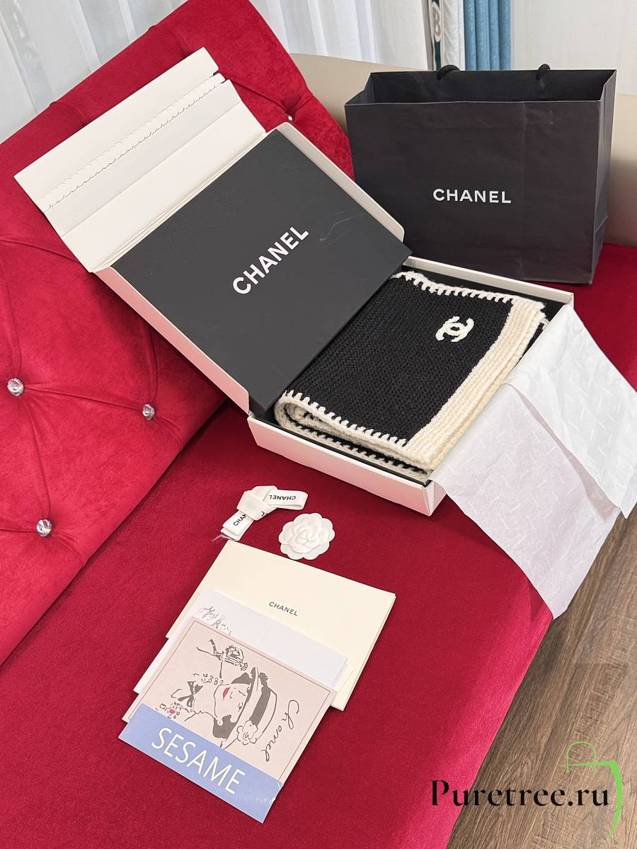 CHANEL | Border Long Scarf Black