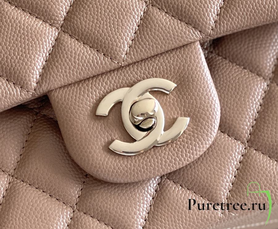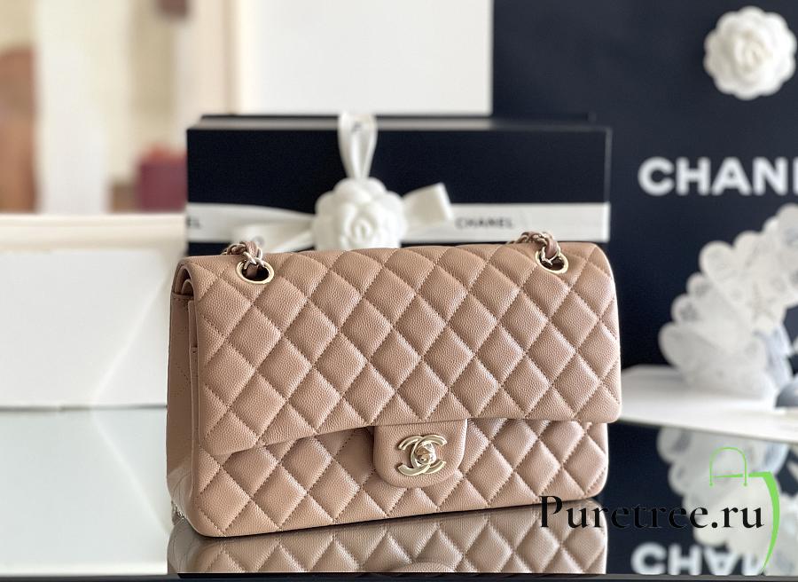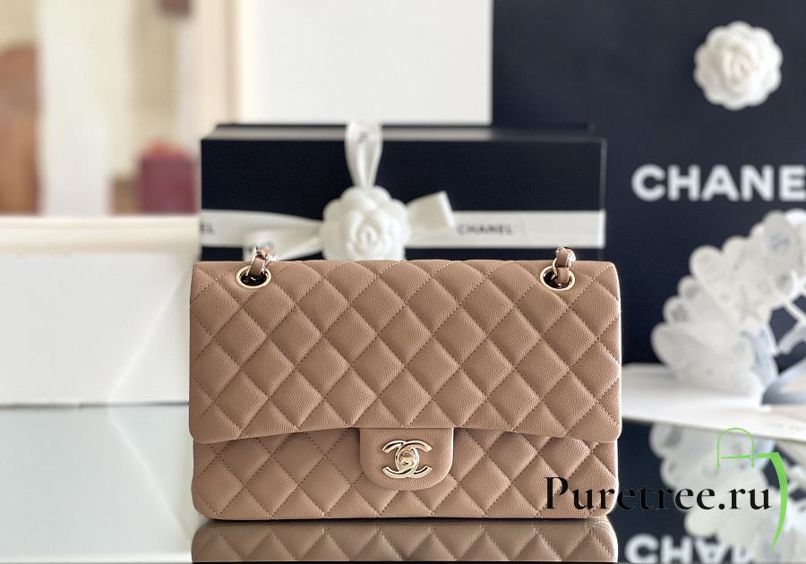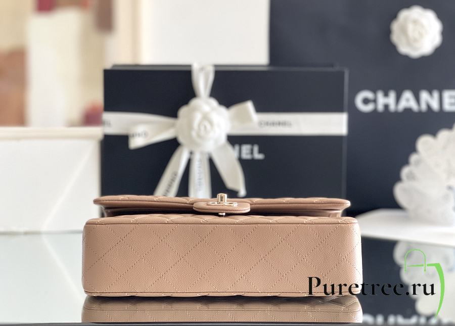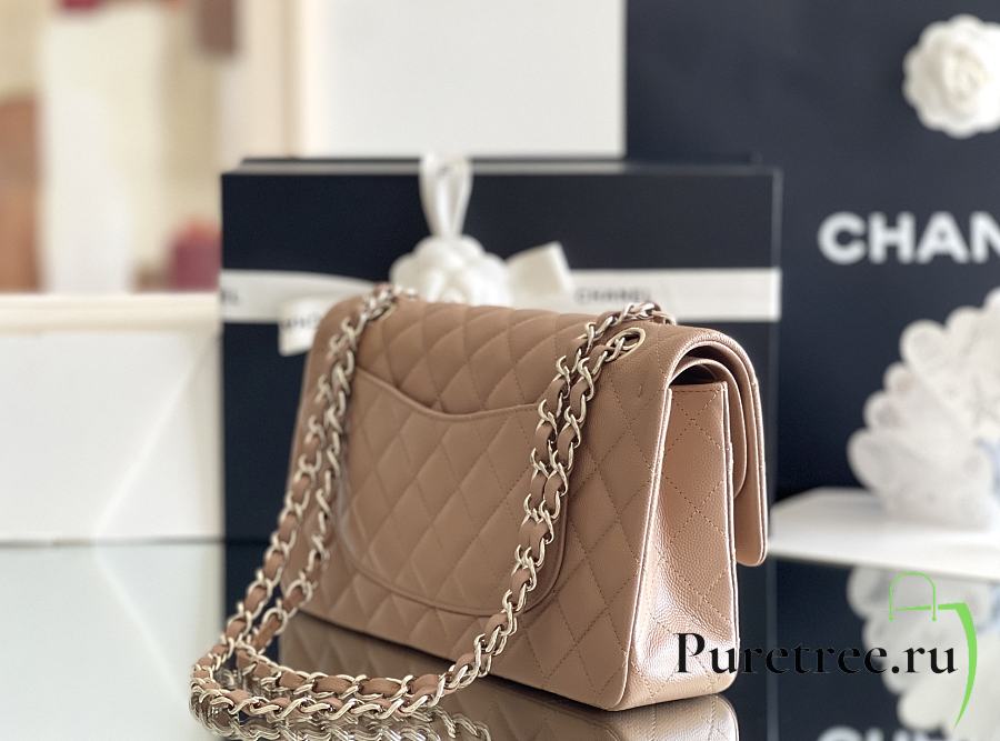 Chanel Classic Flap Bag Carviar Leather In Dark beige Size 25.5 cm