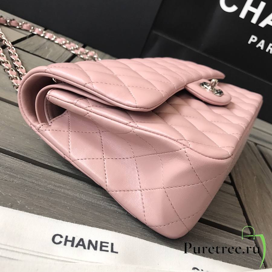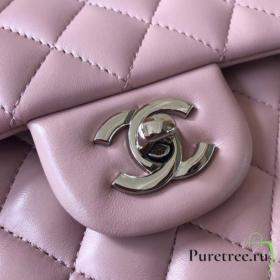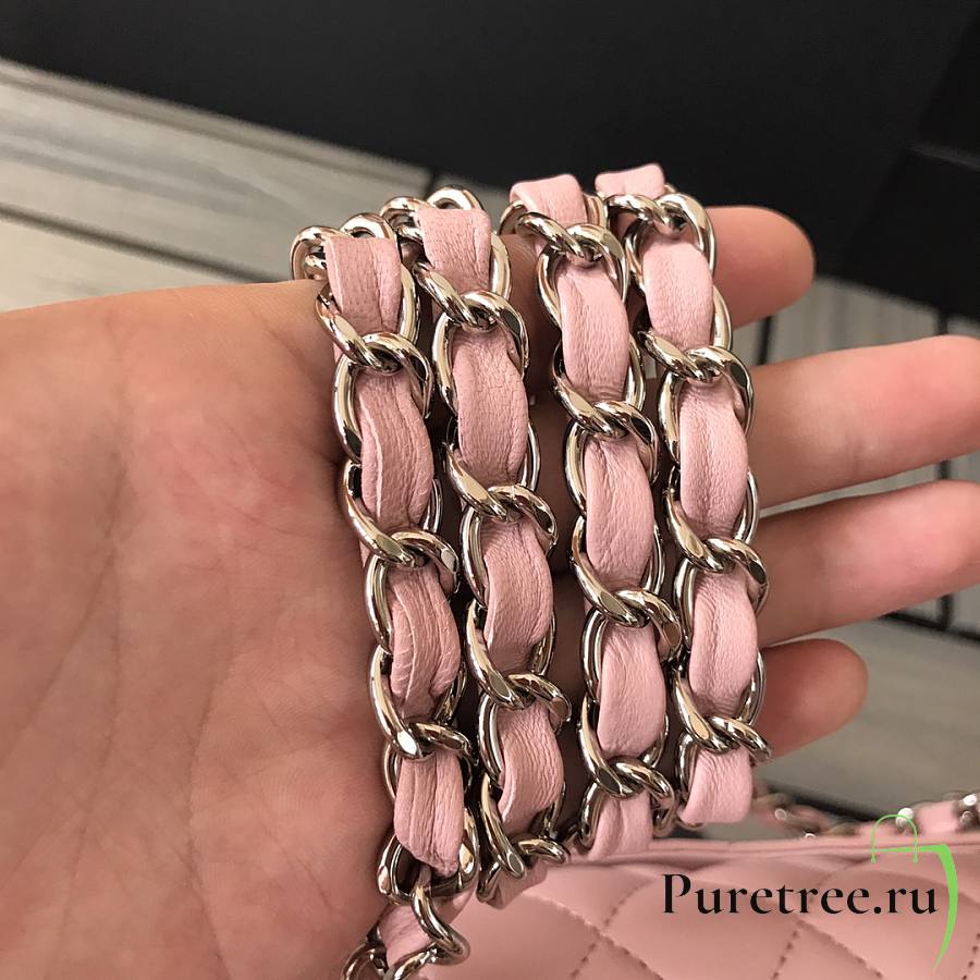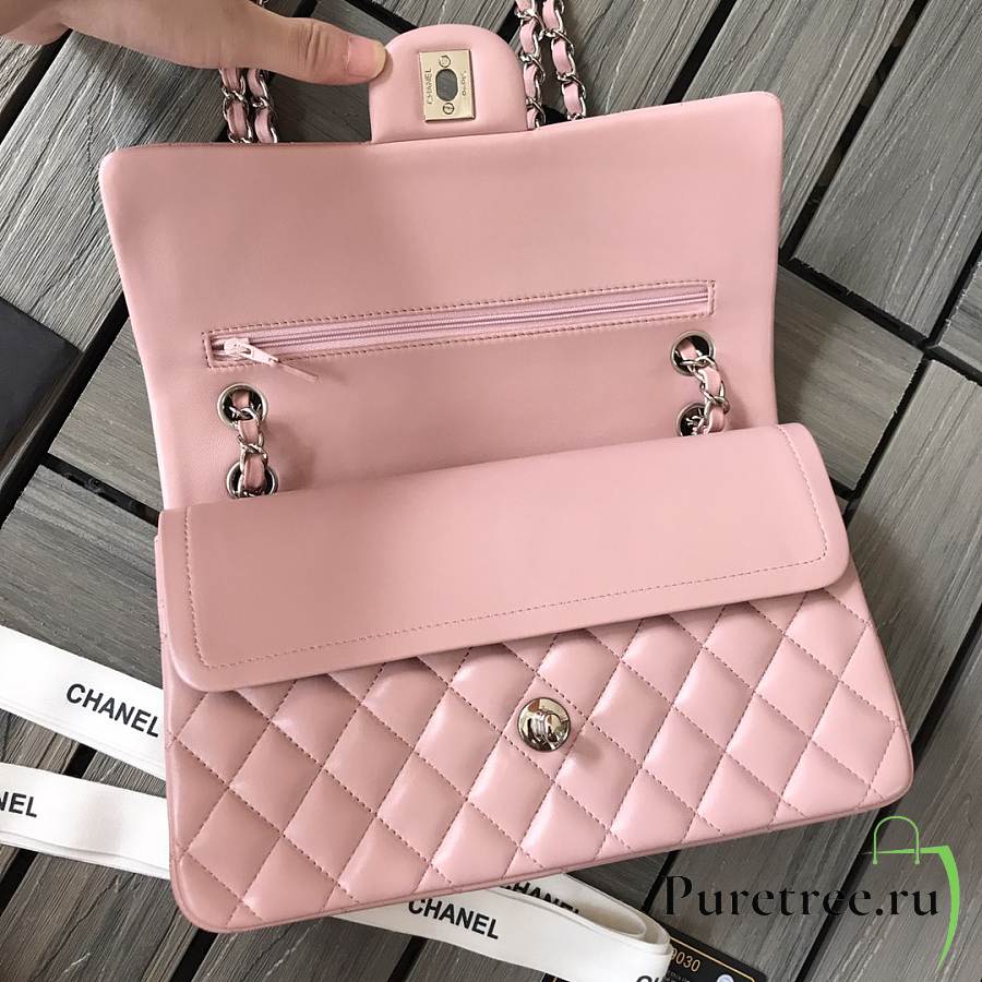 CHANEL | Classic Flap Chain Bag Lambskin Pink Silver - A01112- 25cm