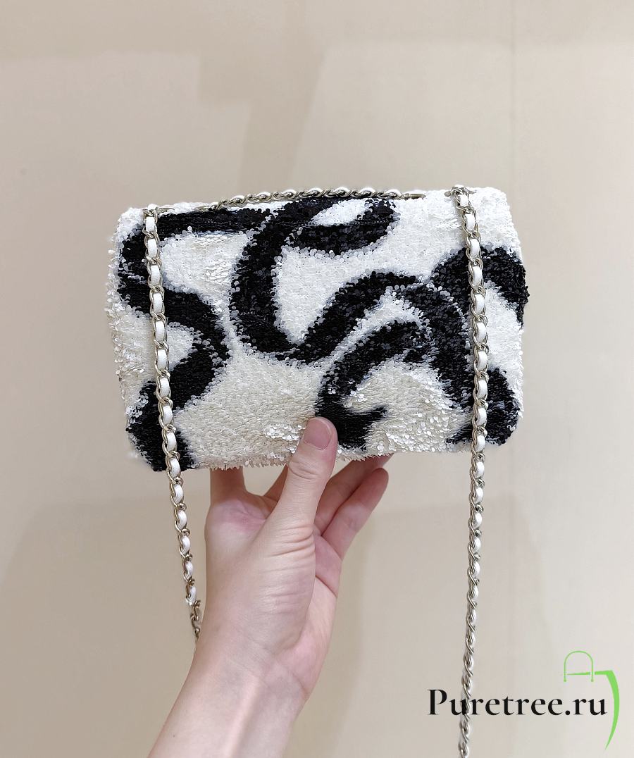 CHANEL | Flap Bag in Sequins Metallic accents white