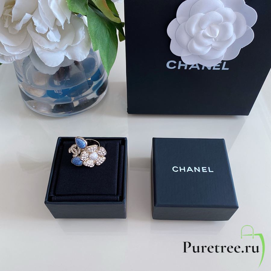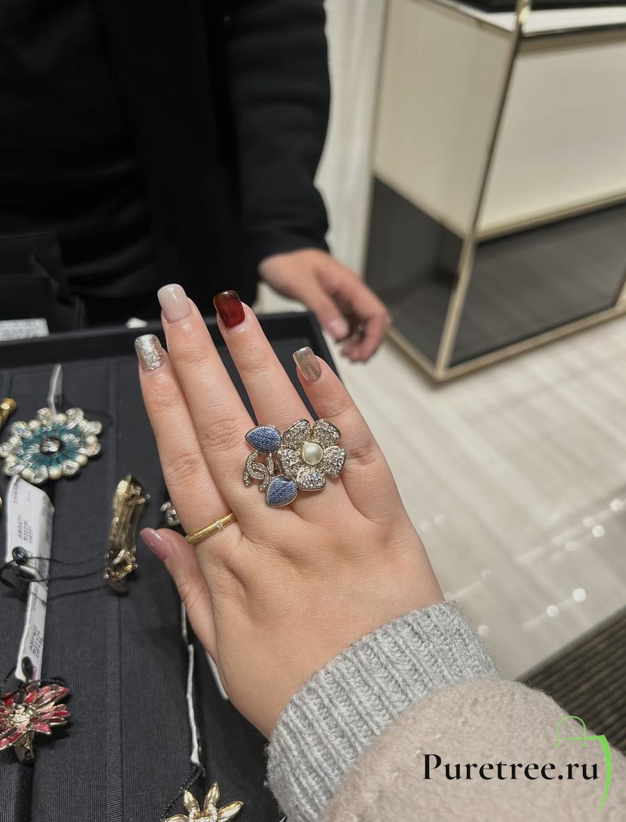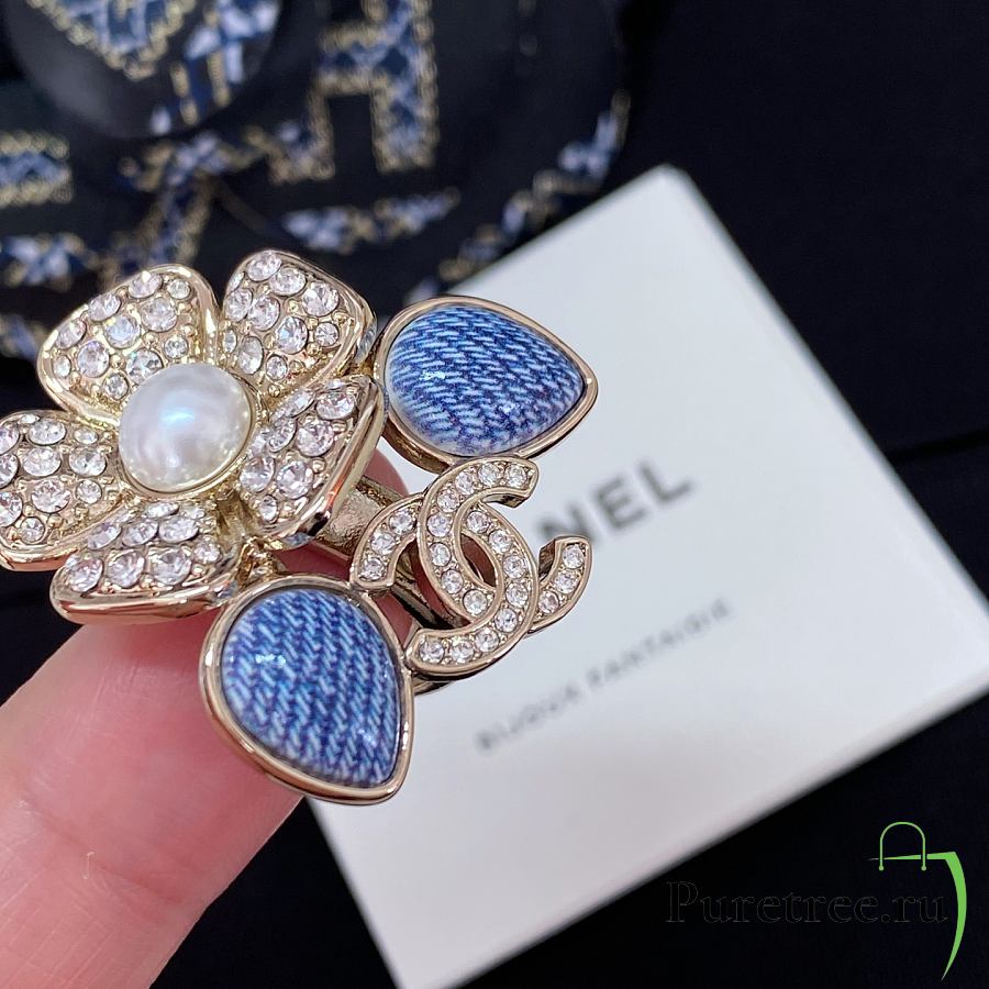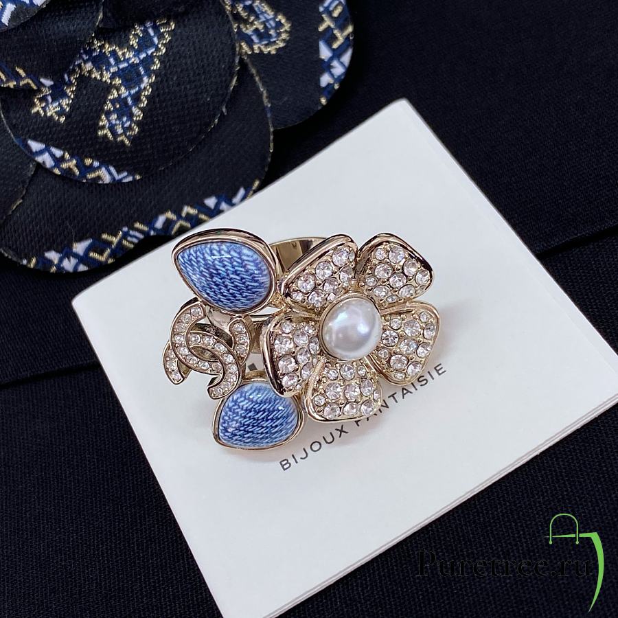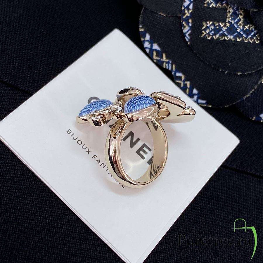 Chanel Fragrant Faux Denim Floral Double C Ring