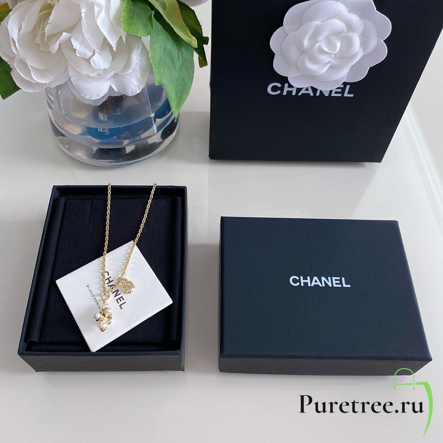 Chanel Fragrant Stacked Barbell Bead Double Pendant Necklace