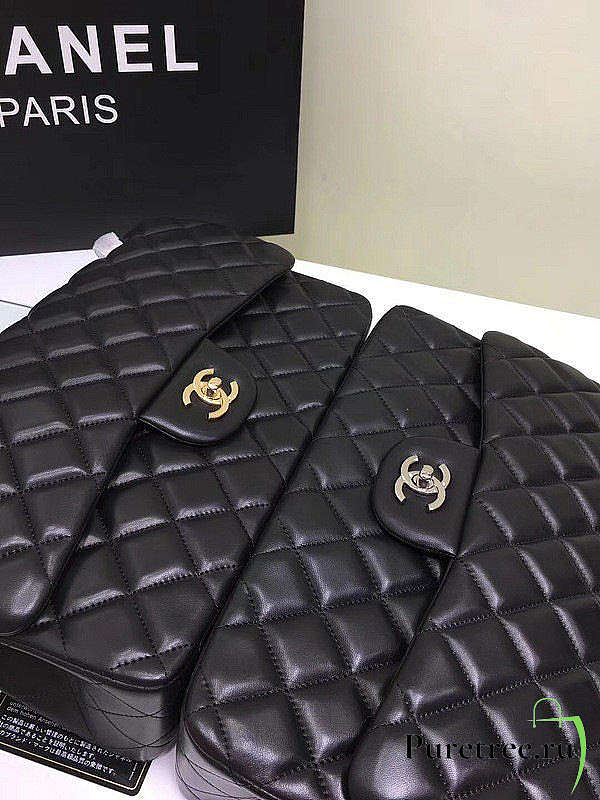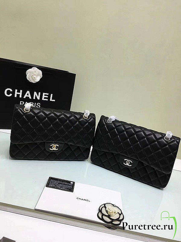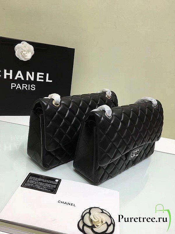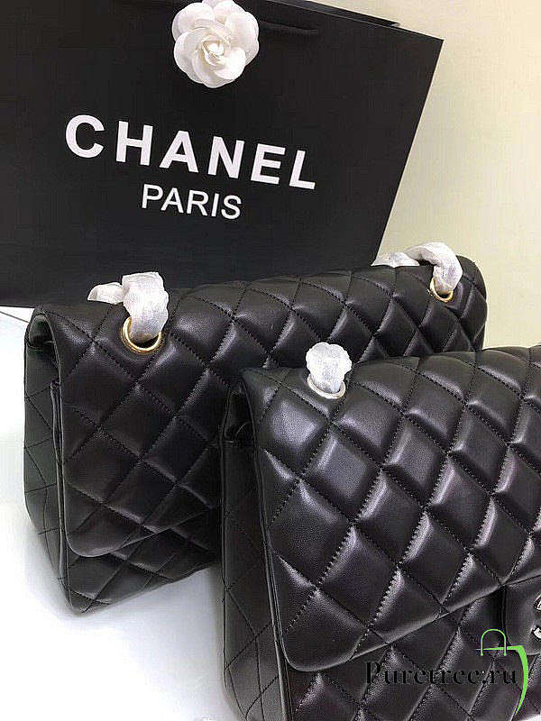 Chanel lambskin leather flap bag with gold/silver hardware black 30cm