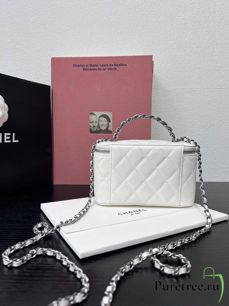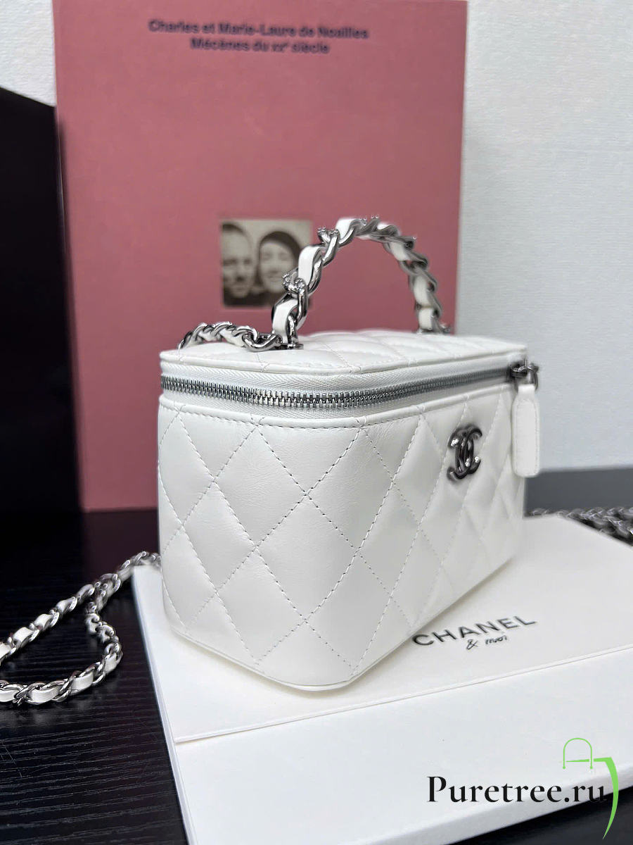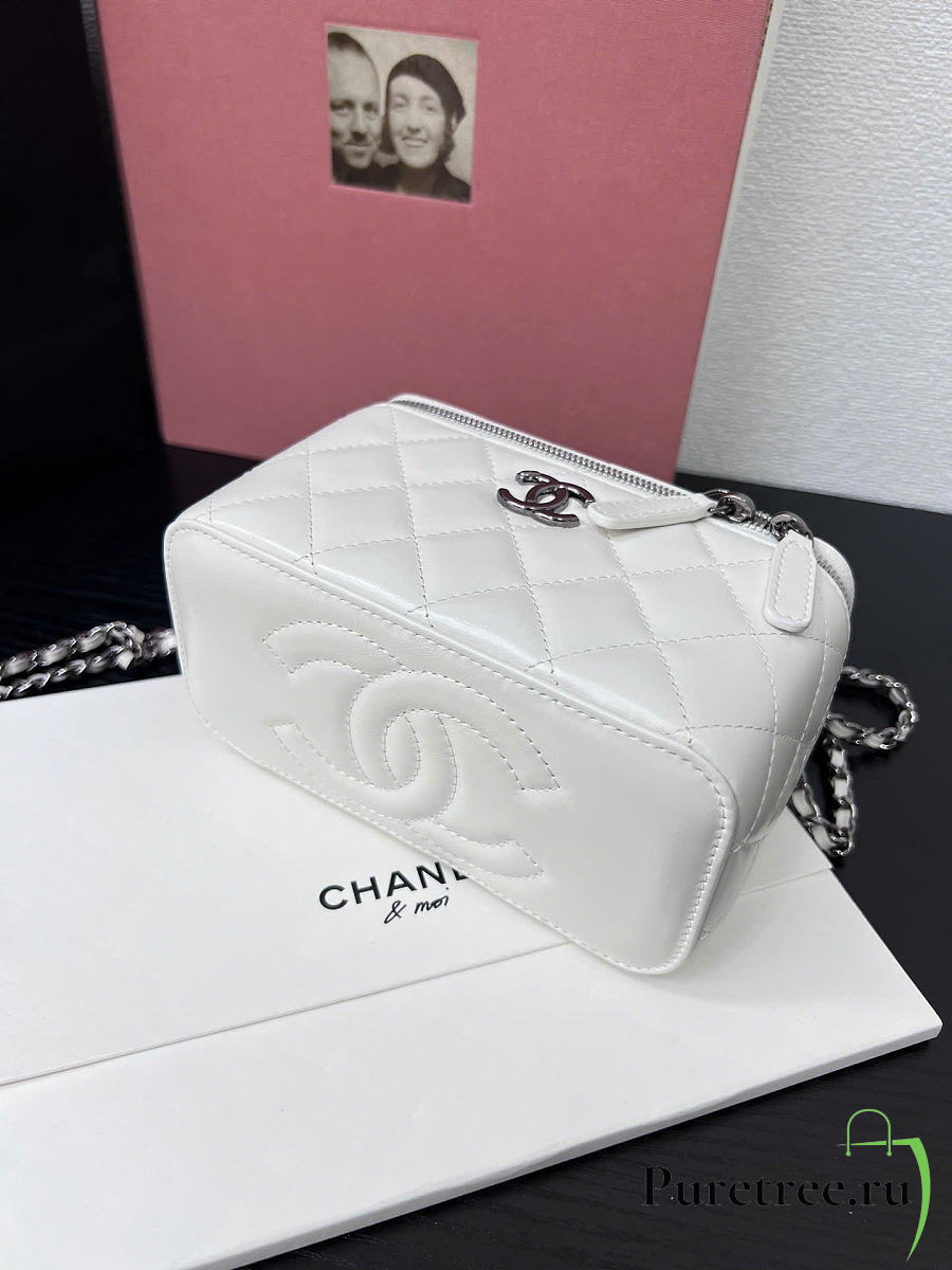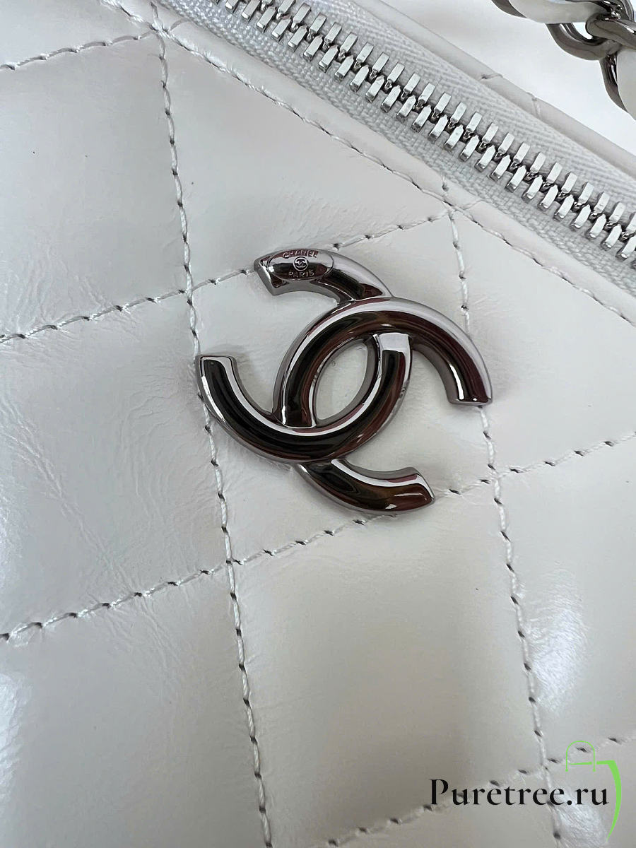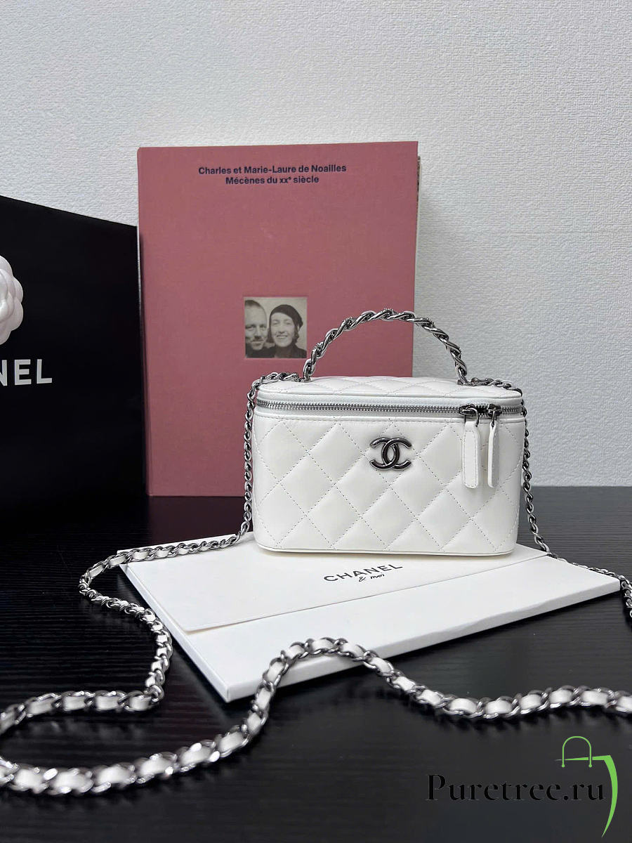 CHANEL | Long vanity with top handle in lambskin white