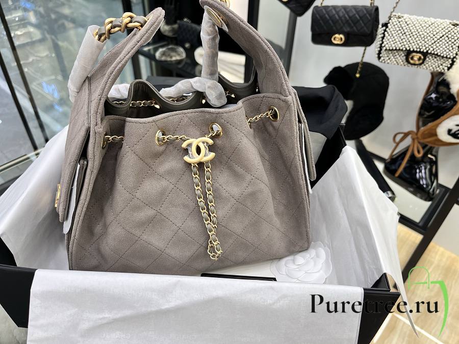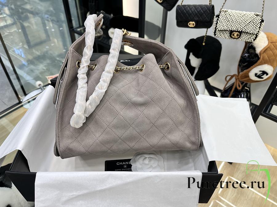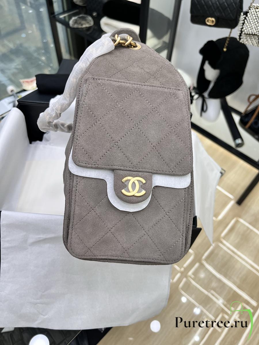 CHANEL | Small Boy Messenger Bag Gray Grained Calfskin AS3350 - 12.5 x 18 x 6cm
