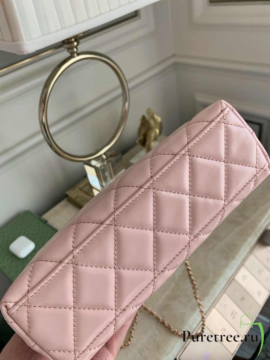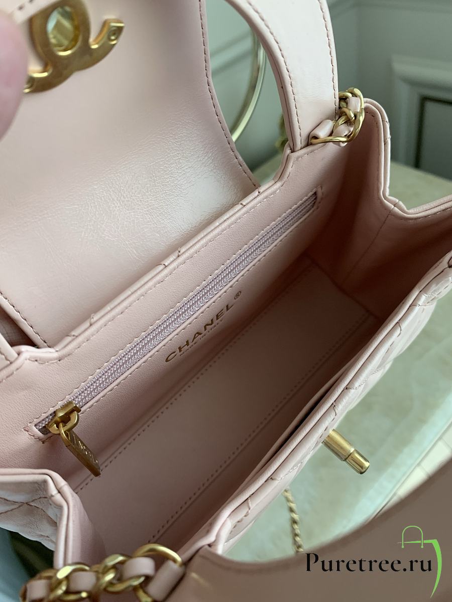 CHANEL Light Pink Lambskin Quilted Top Handle Mini Vanity Case