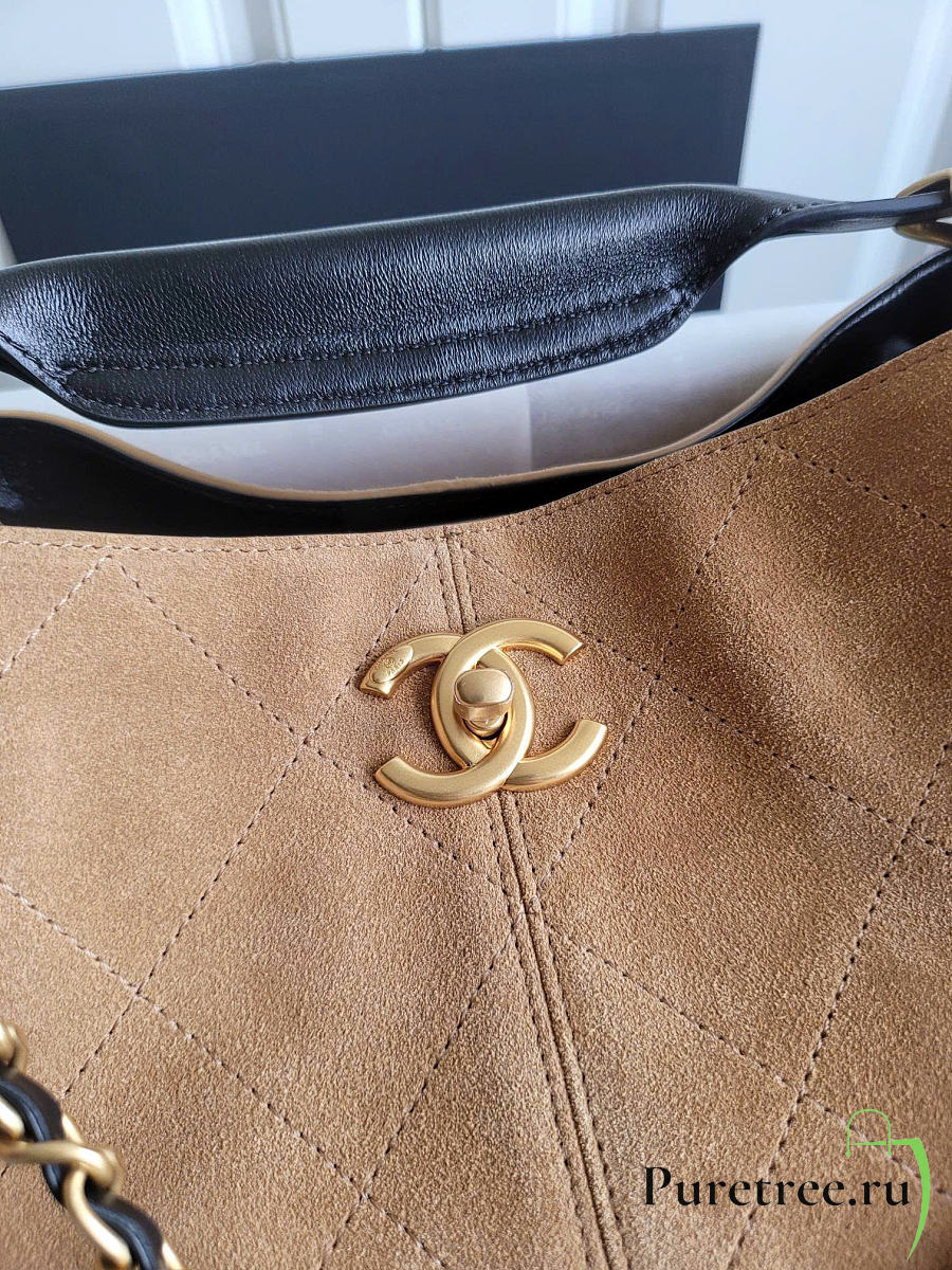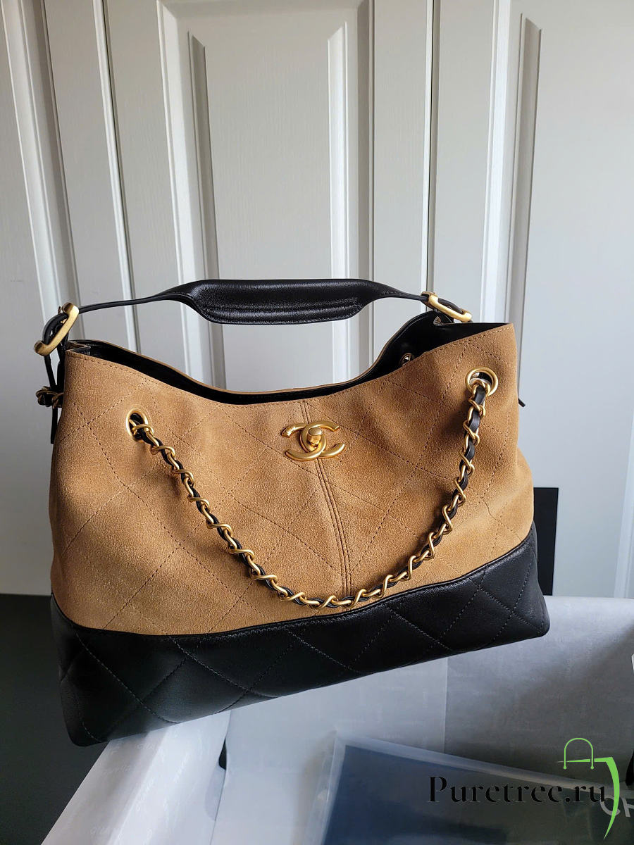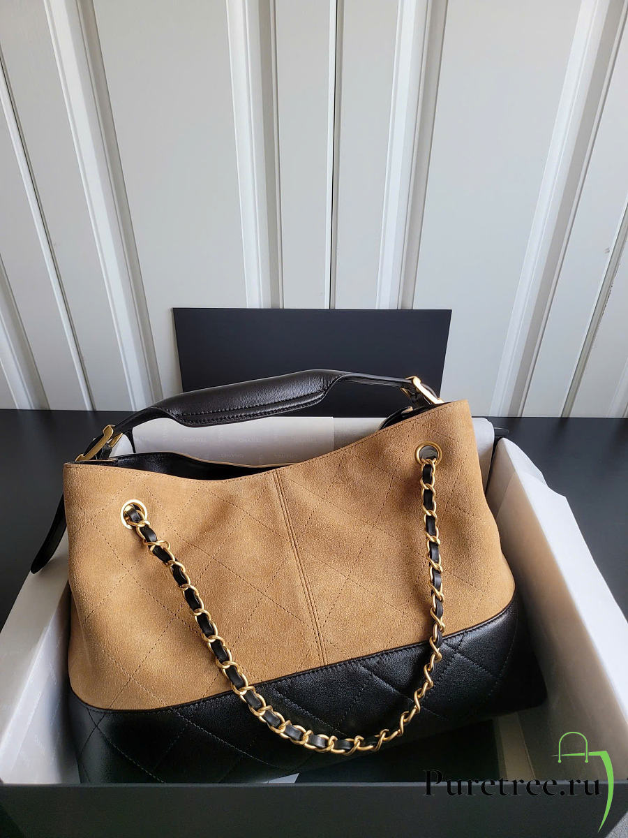 Chanel Suede Calfskin Shiny Lambskin Quilted Small Shopping Bag