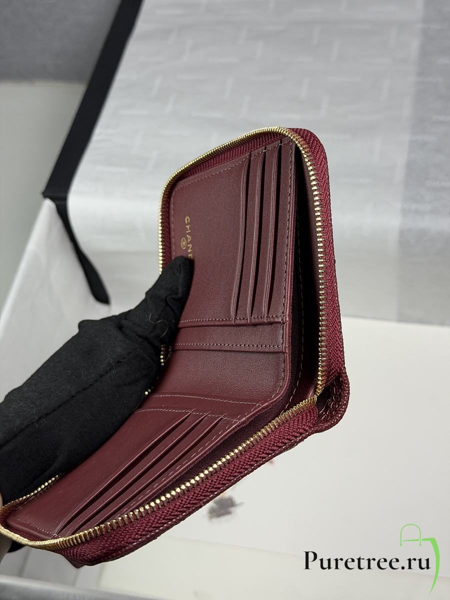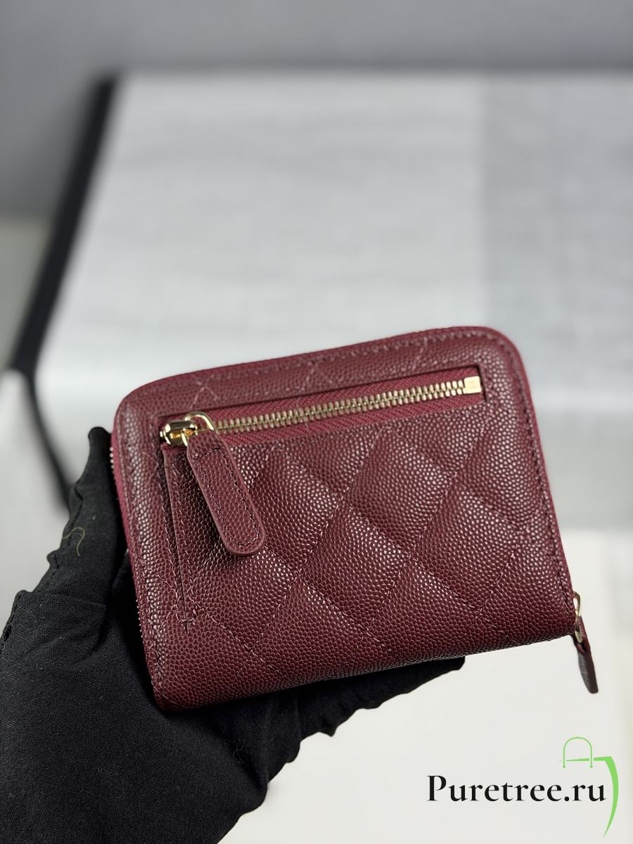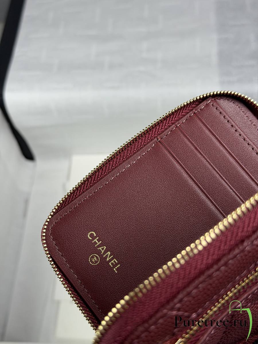 CHANEL | Zippered Coin Case Carviar Gold Hardware Burgundy