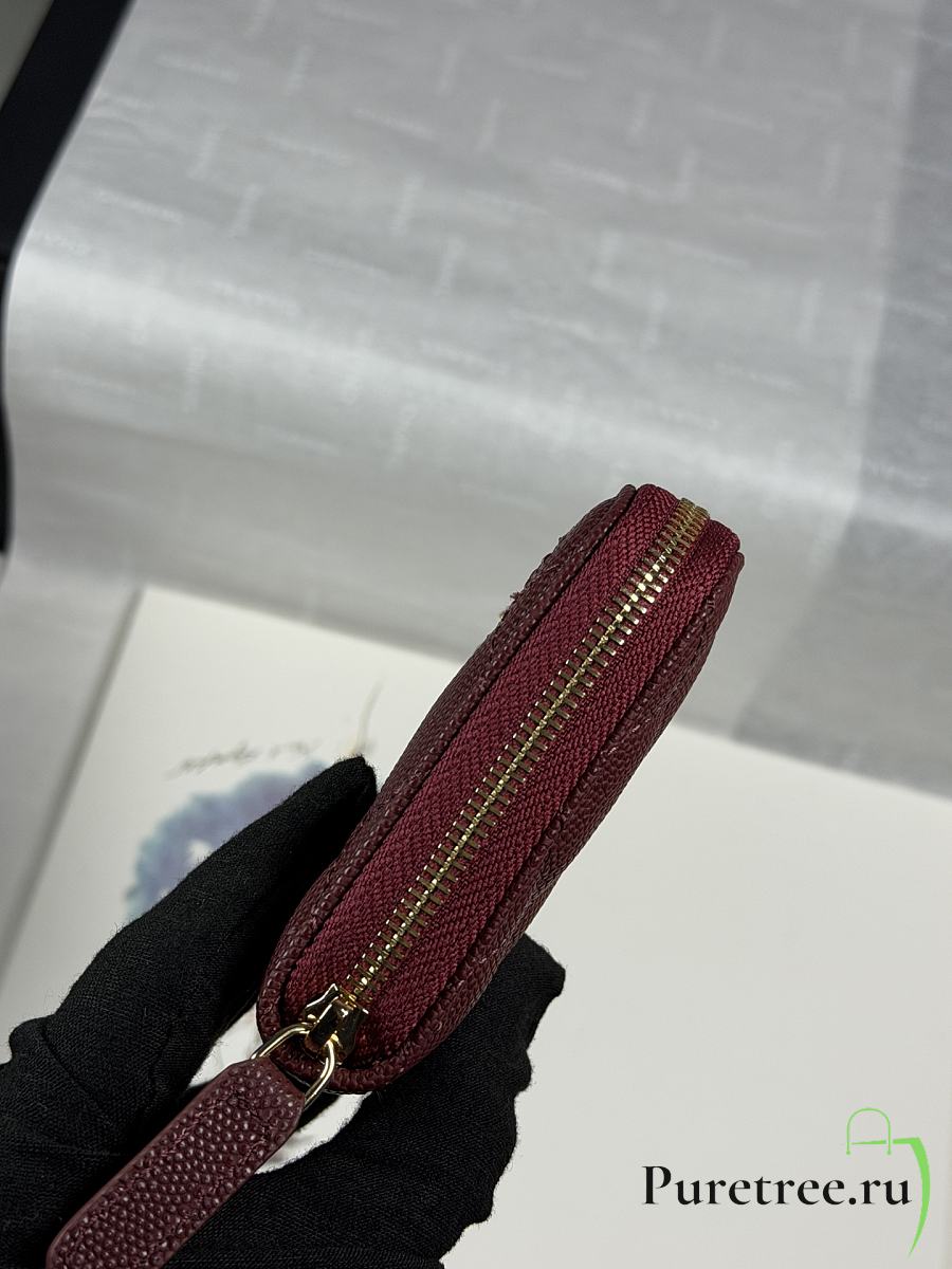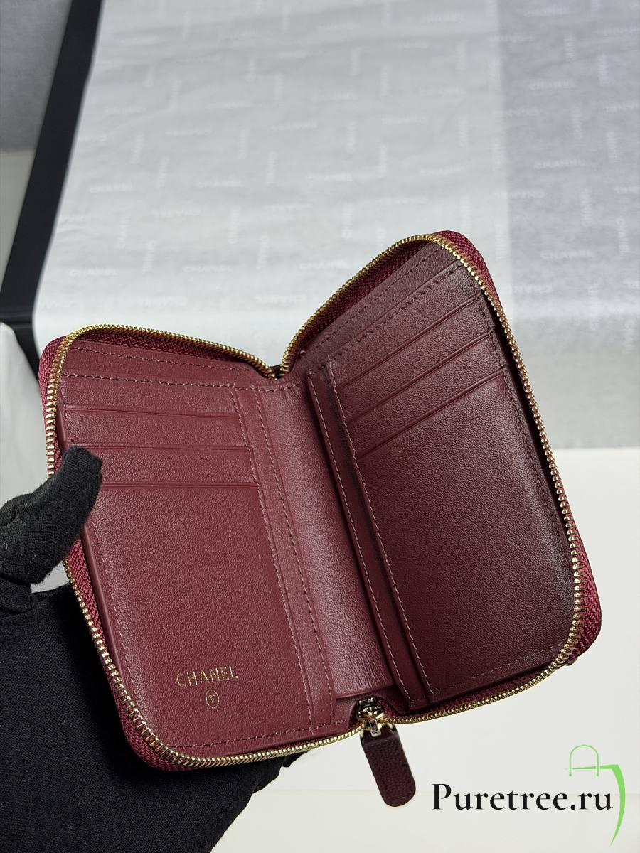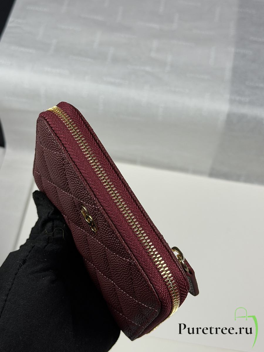 CHANEL | Zippered Coin Case Carviar Gold Hardware Burgundy