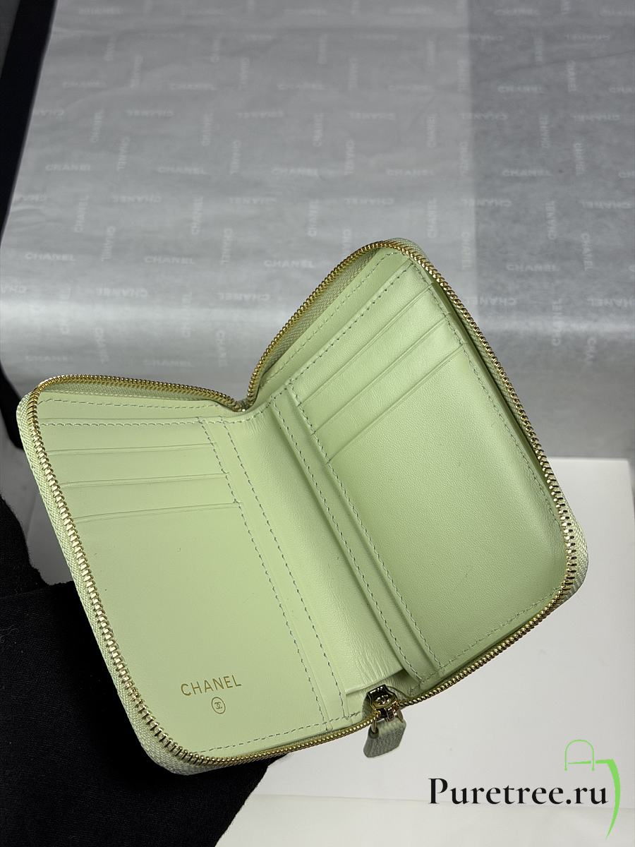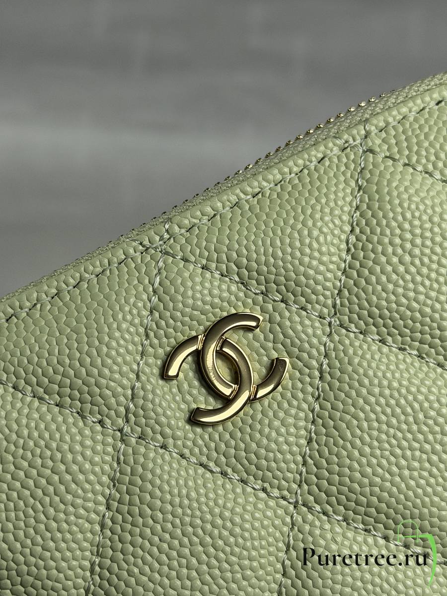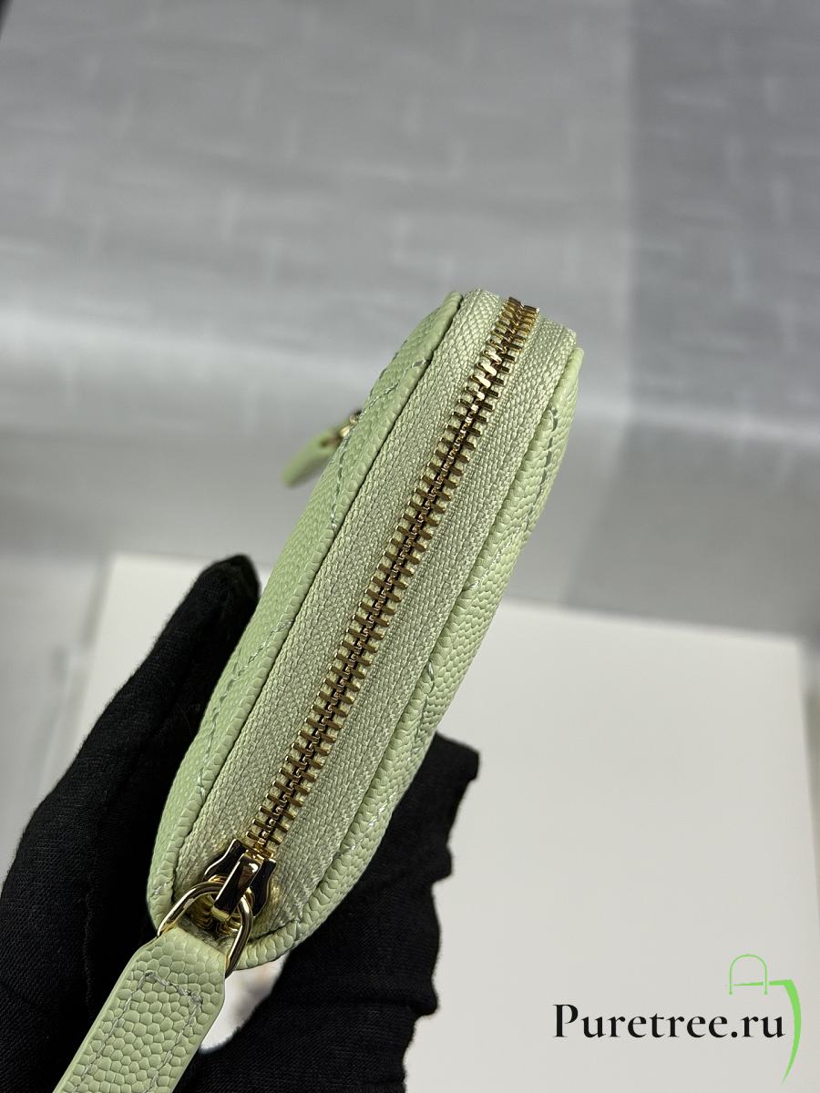 CHANEL | Zippered Coin Case Carviar Gold Hardware Light Green