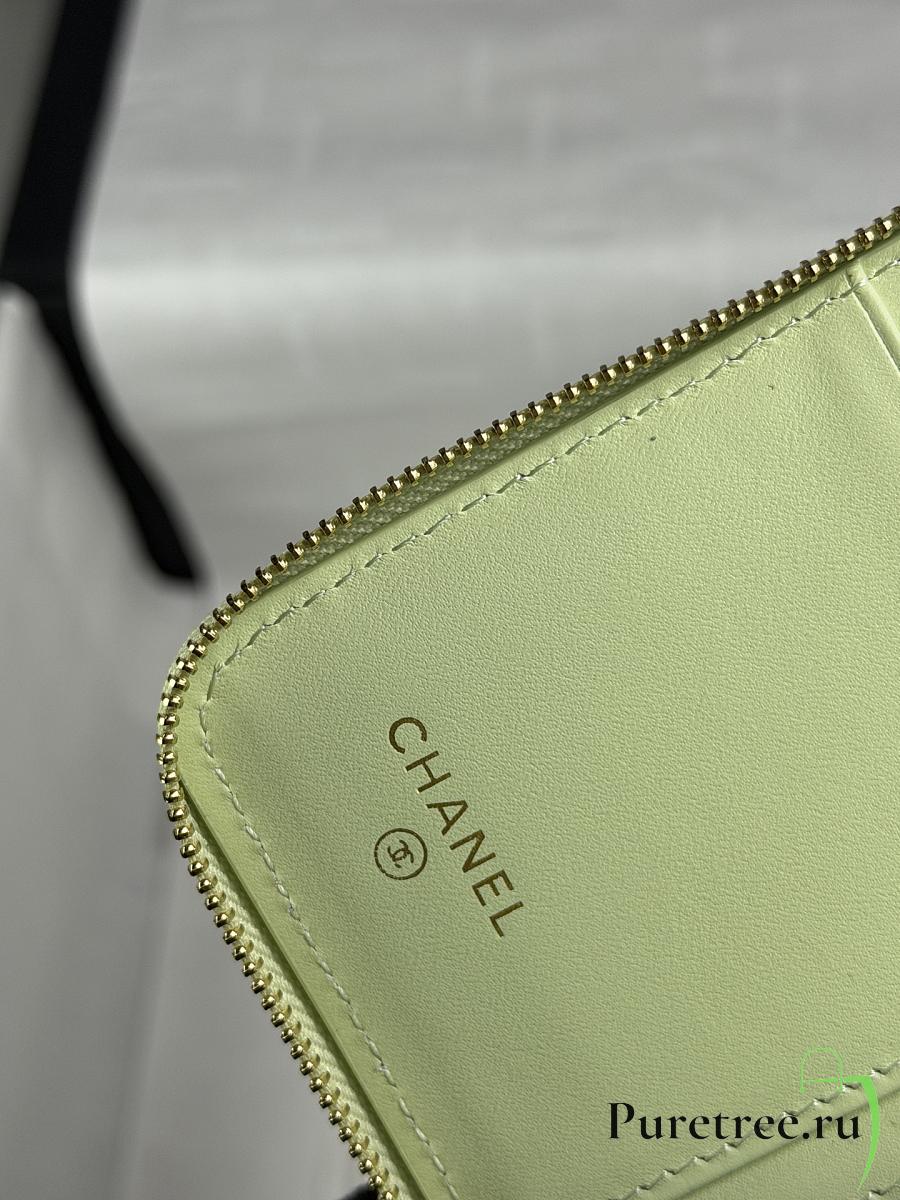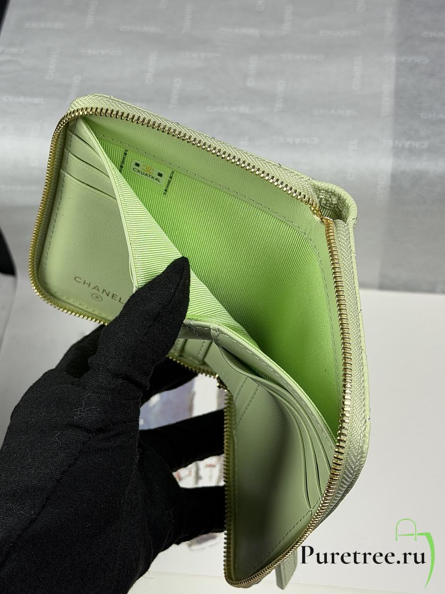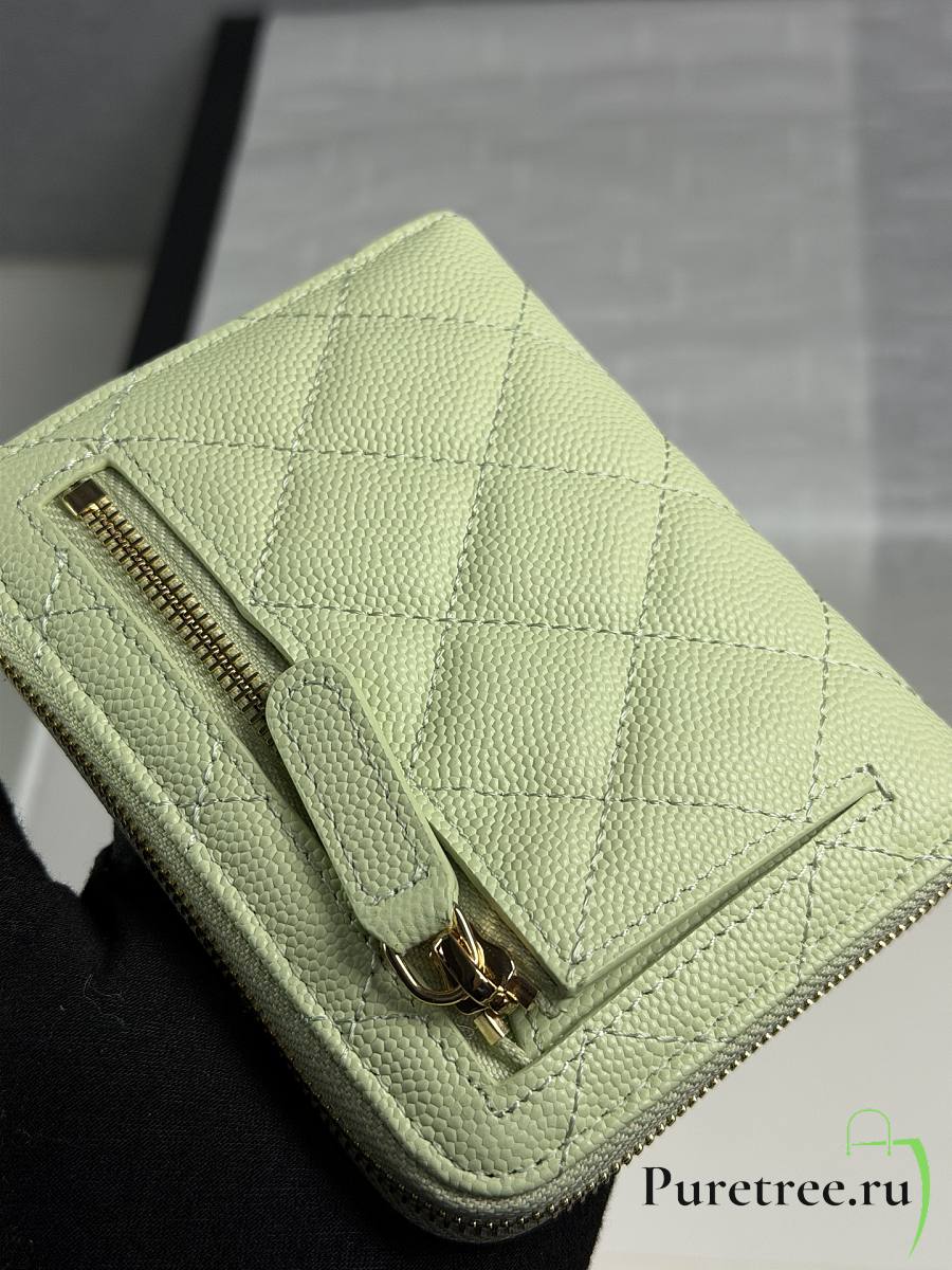 CHANEL | Zippered Coin Case Carviar Gold Hardware Light Green