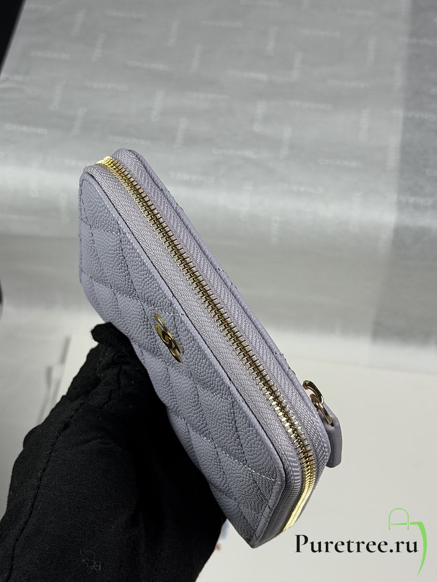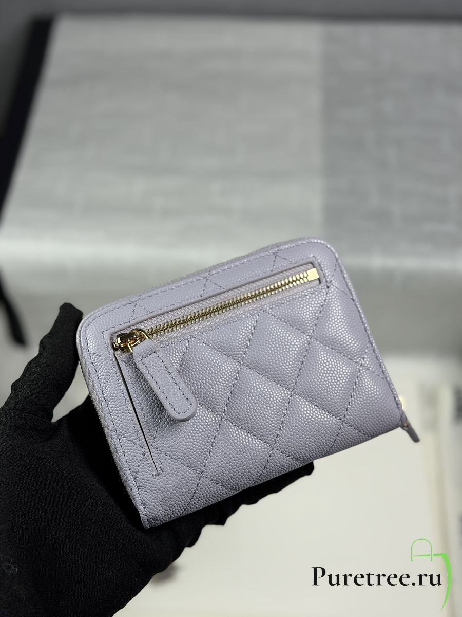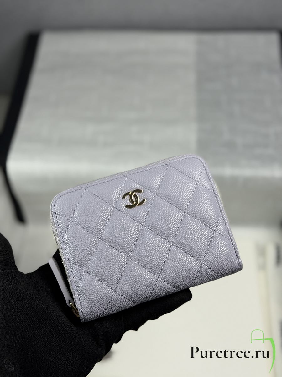 CHANEL | Zippered Coin Case Carviar Gold Hardware Purble