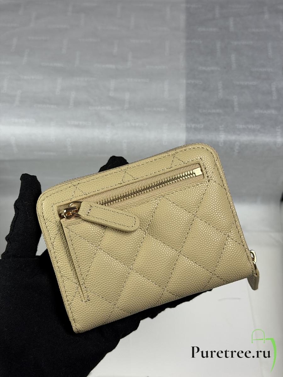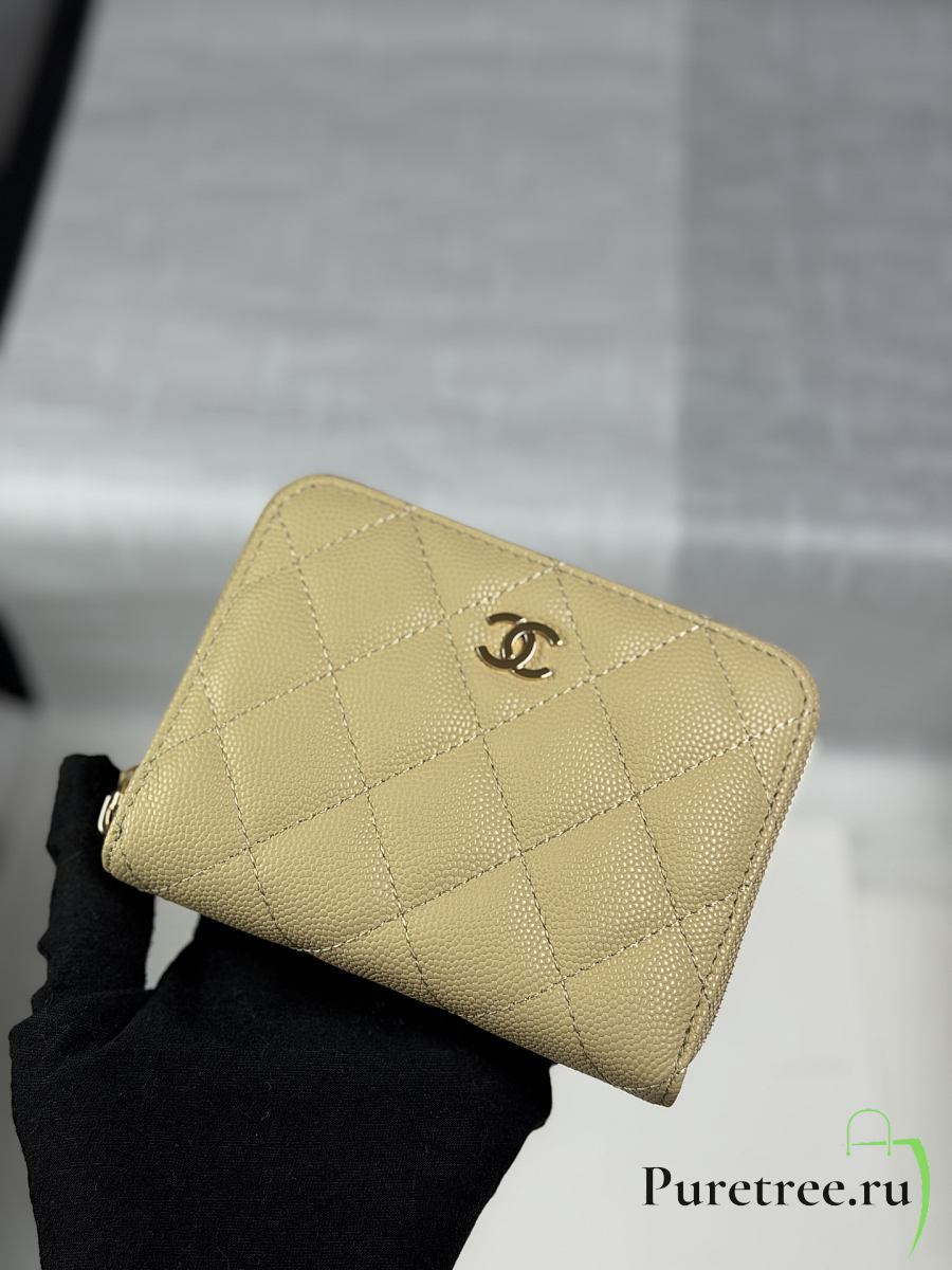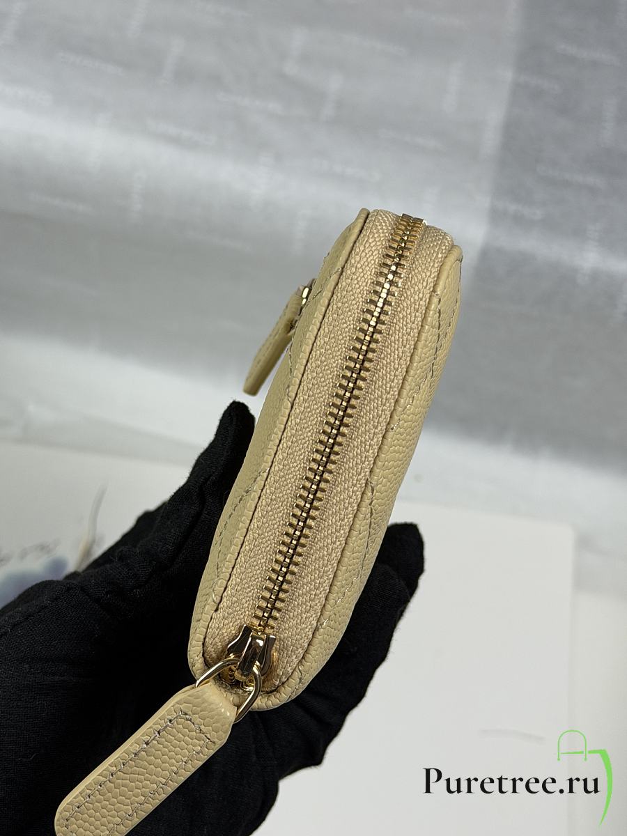 CHANEL | Zippered Coin Case Carviar Gold Hardware Yellow