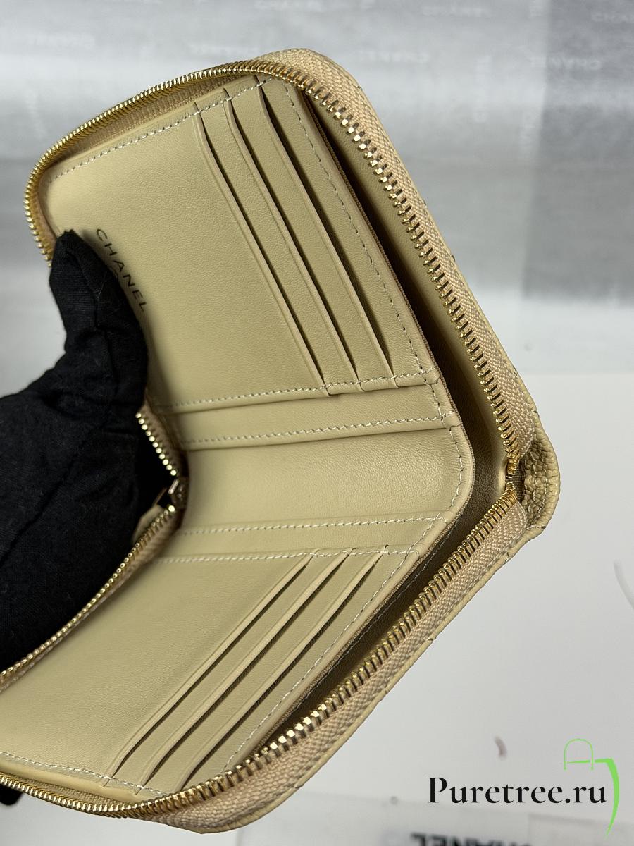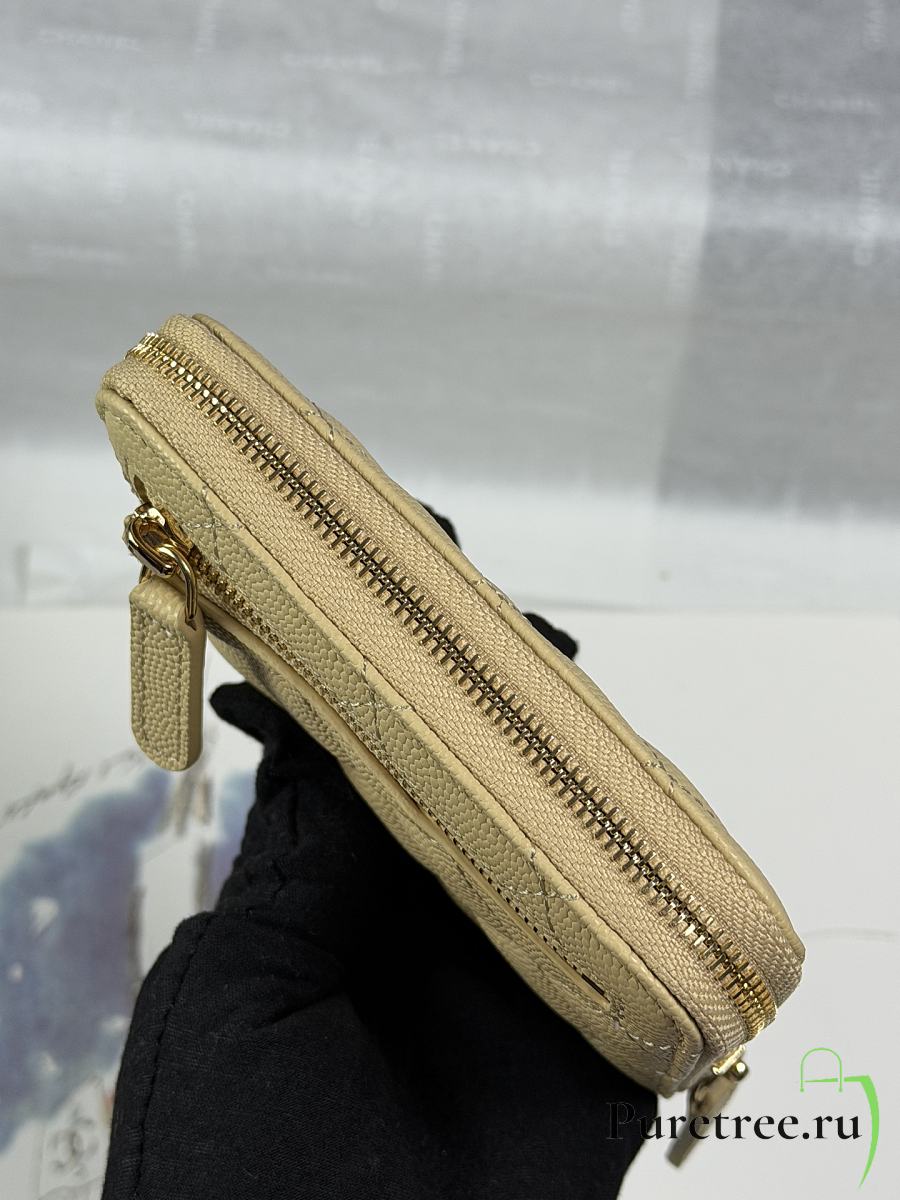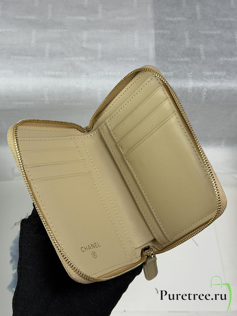 CHANEL | Zippered Coin Case Carviar Gold Hardware Yellow
