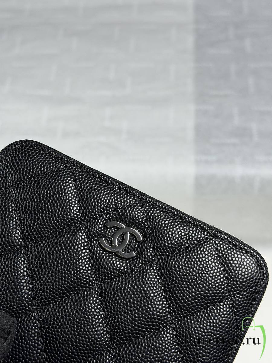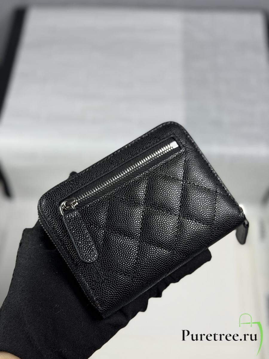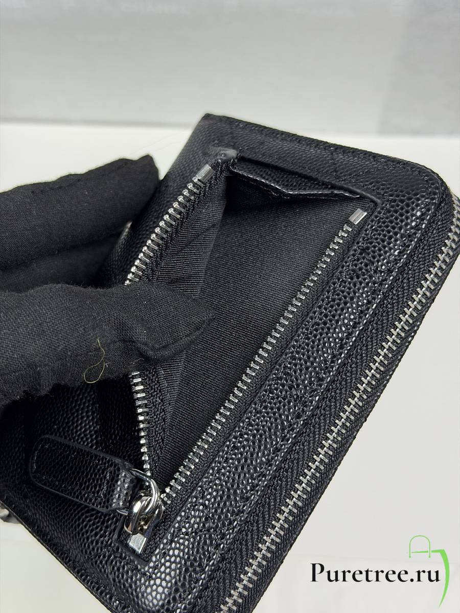 CHANEL | Zippered Coin Case Carviar Silver Hardware Black