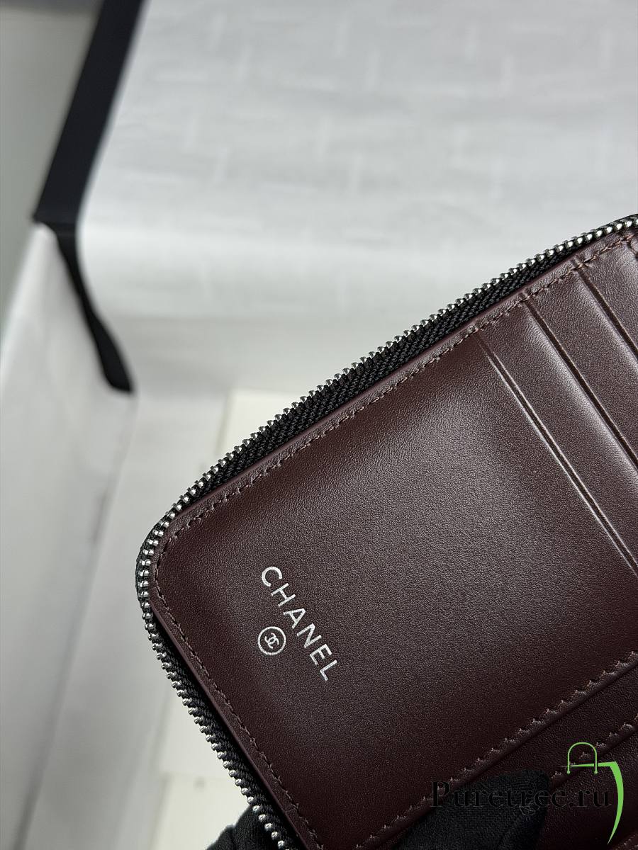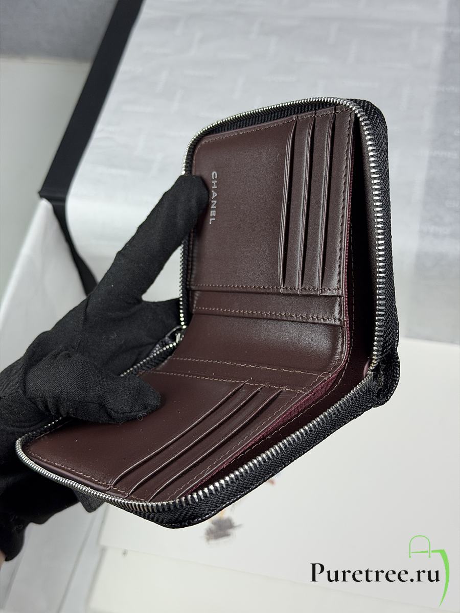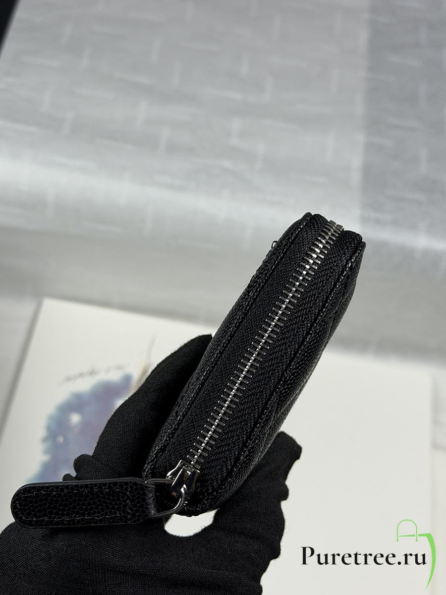 CHANEL | Zippered Coin Case Carviar Silver Hardware Black