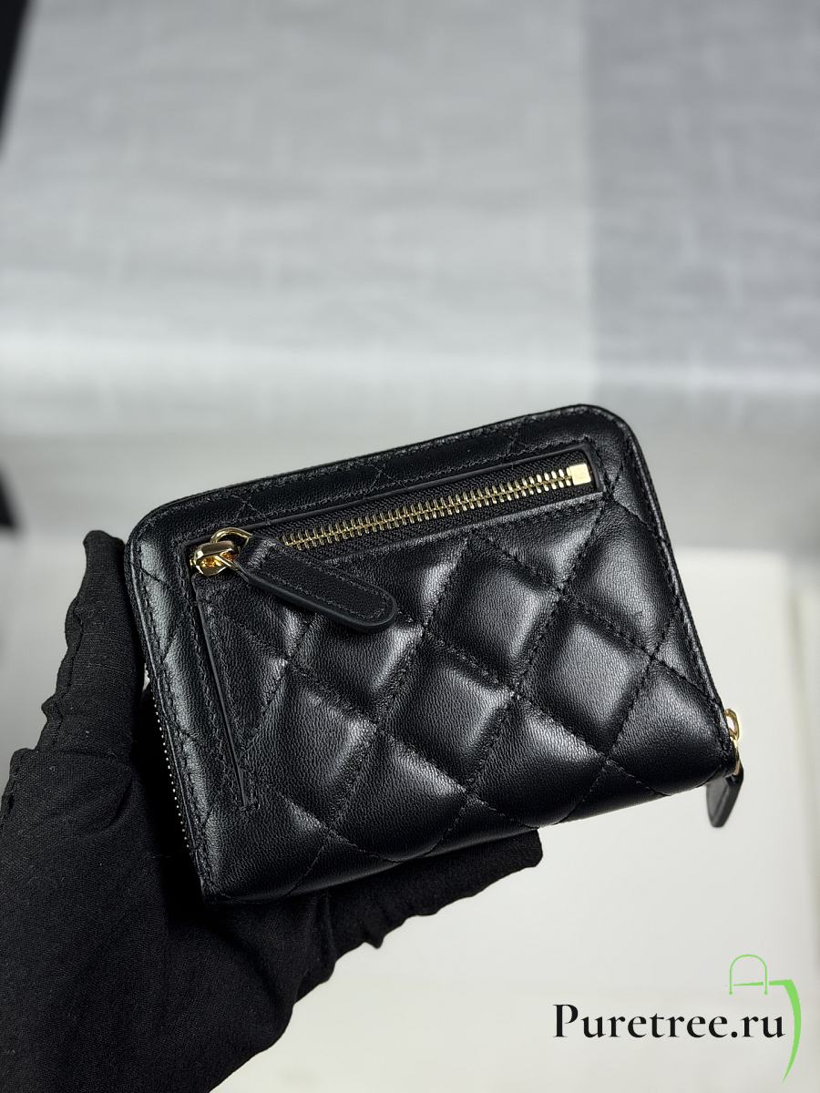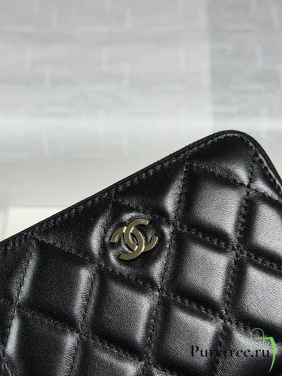 CHANEL | Zippered Coin Case Lambskin Gold Hardware Black