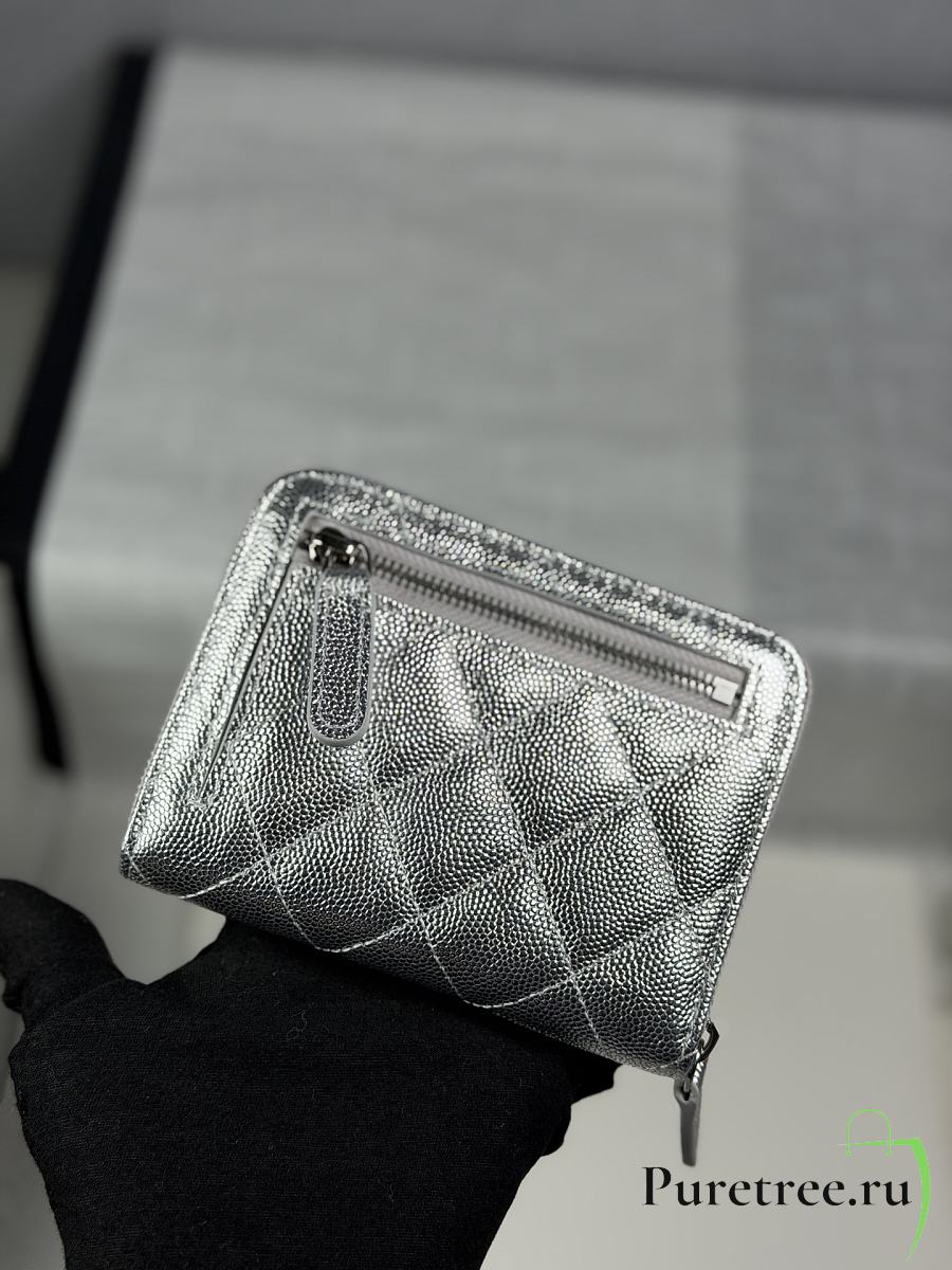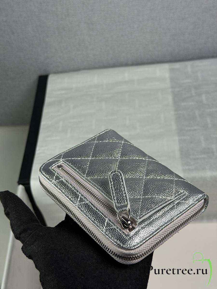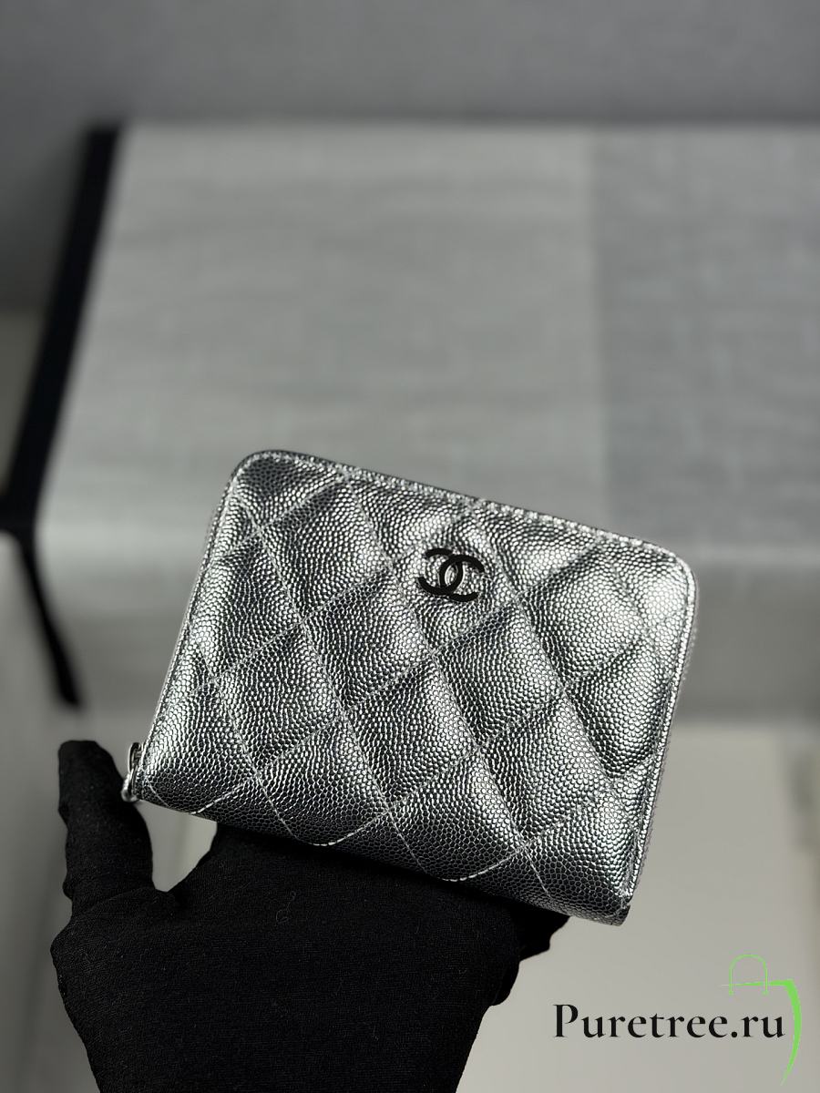 Chanel Metallic Grined Blue Calfskin CC Wallet WOC Bag | A84451