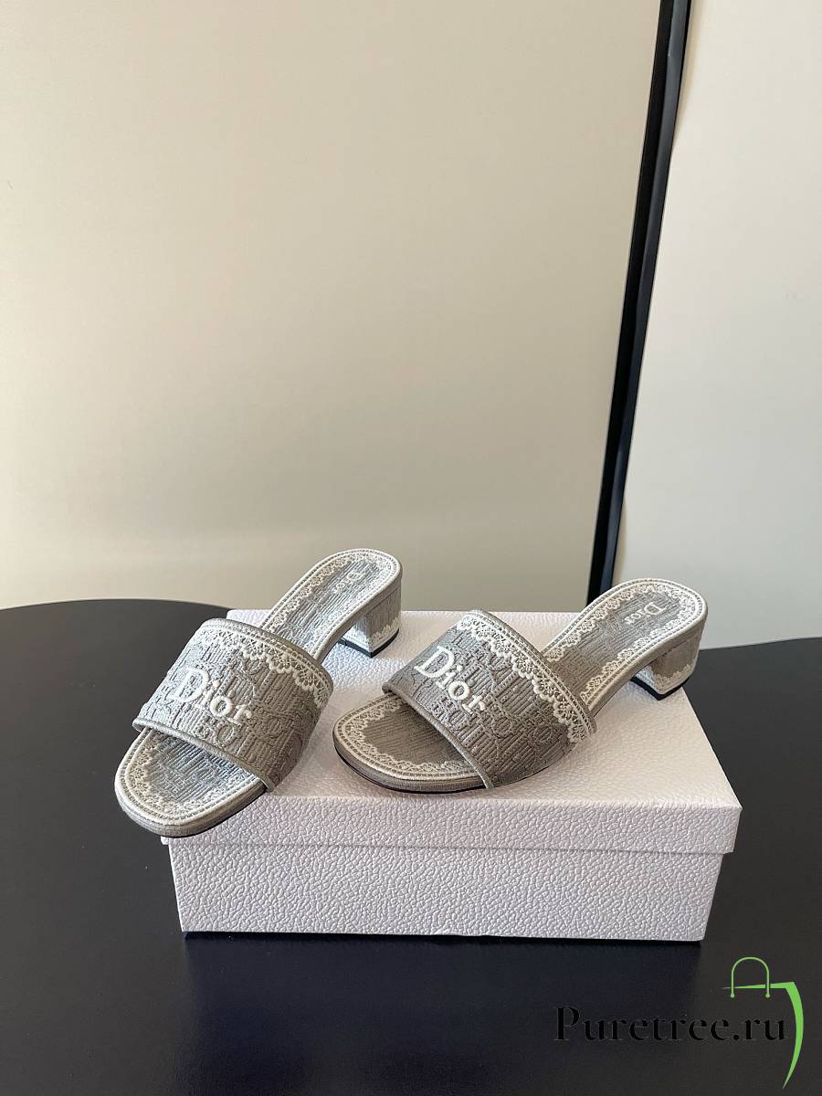 Dior Dentelle Heeled Slide 3.5 cm Gray