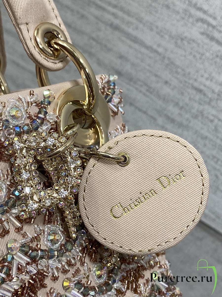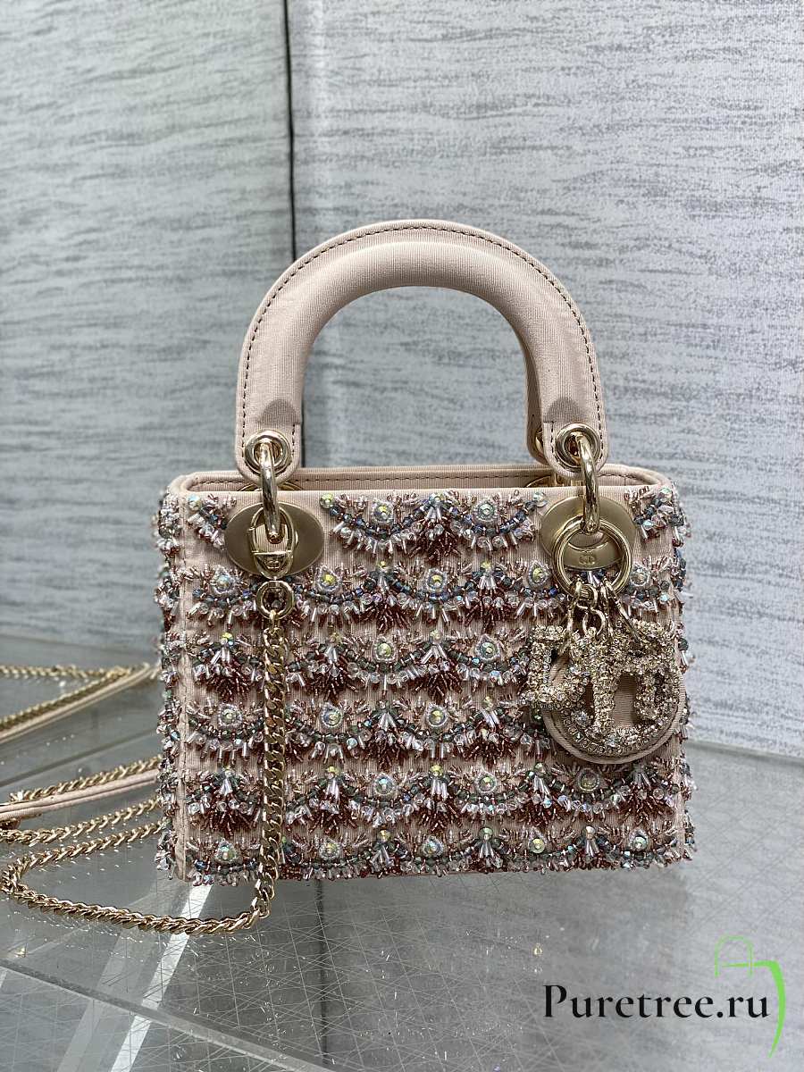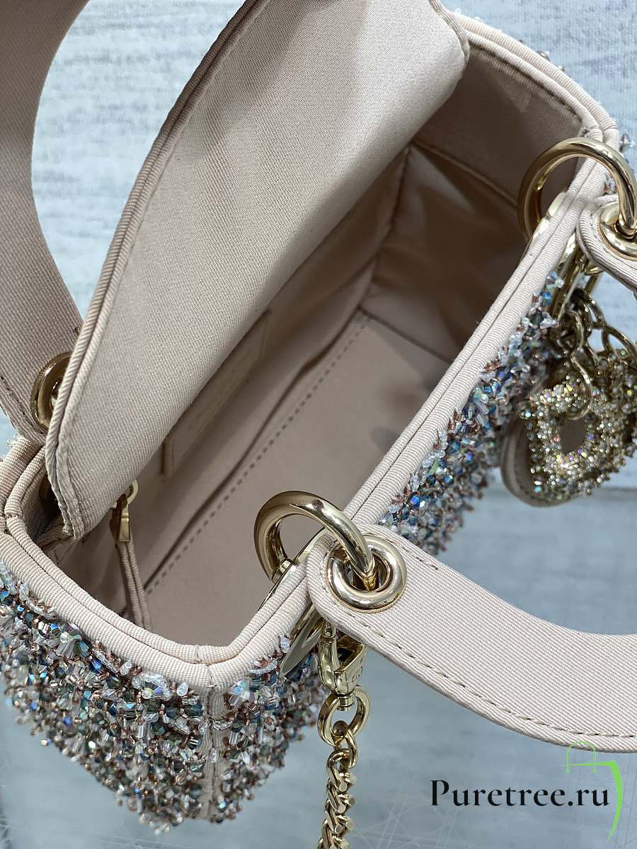 Dior Mini Lady Bag Square-Pattern Embroidery Set with Strass and White Round Beads