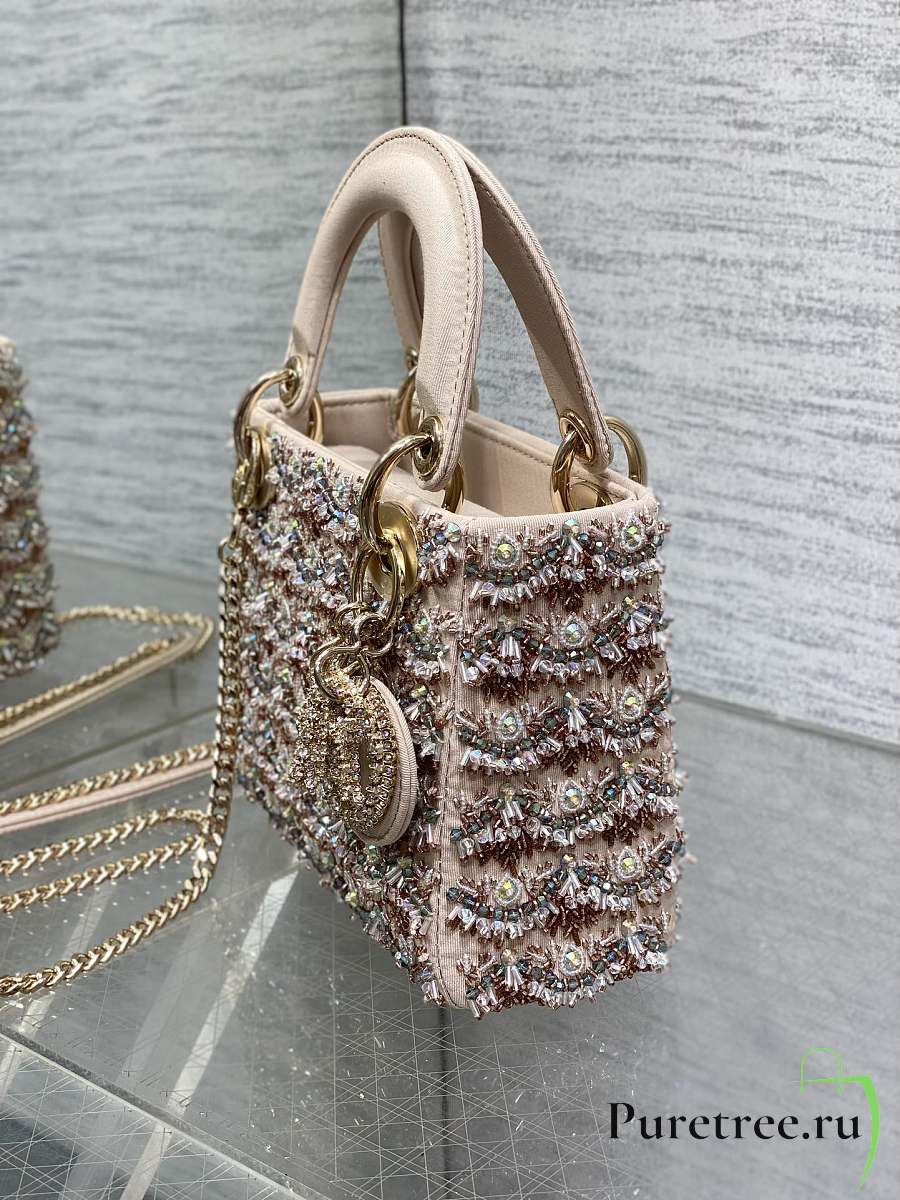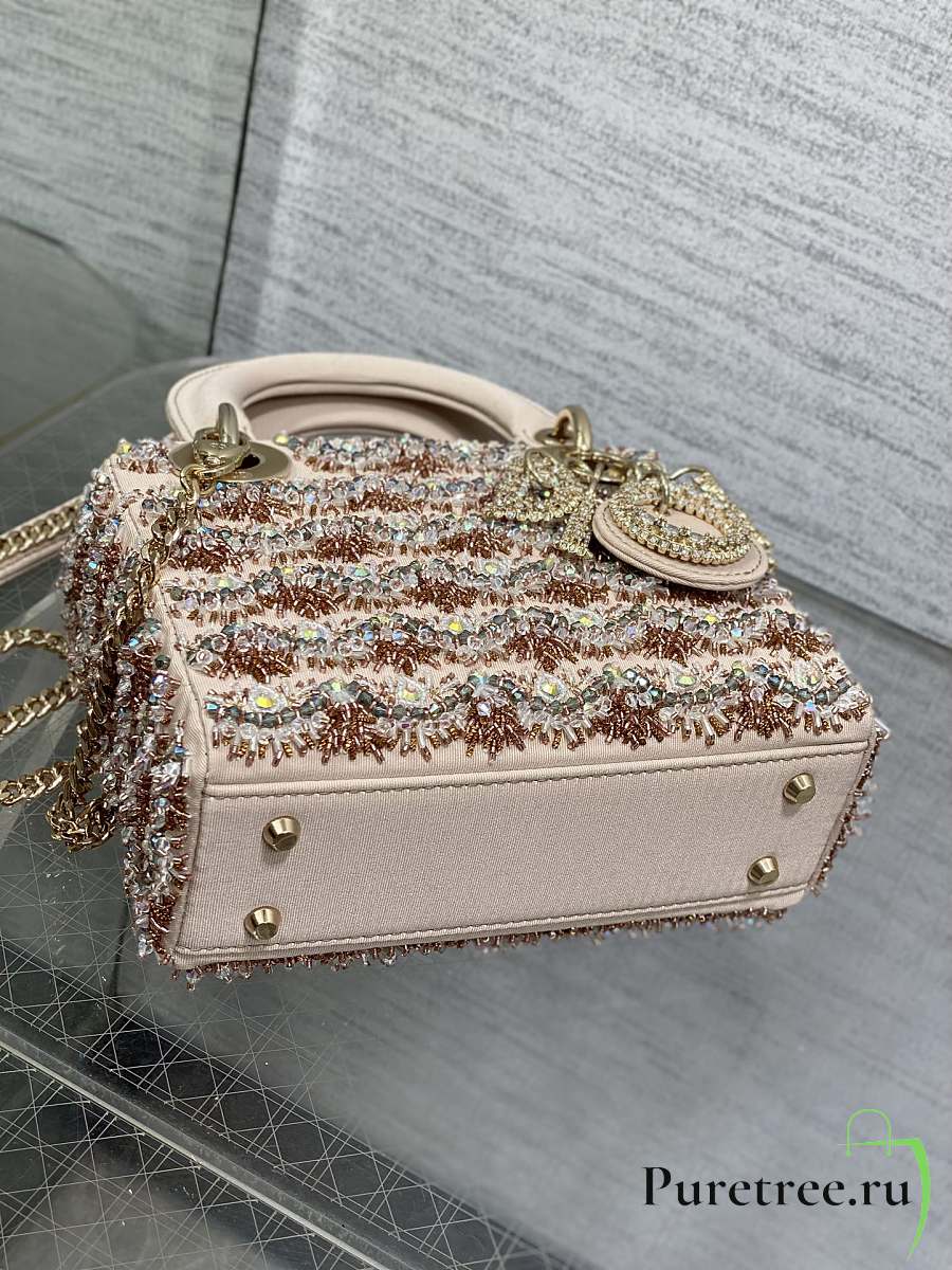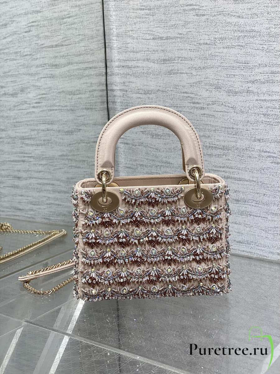 Dior Mini Lady Bag Square-Pattern Embroidery Set with Strass and White Round Beads